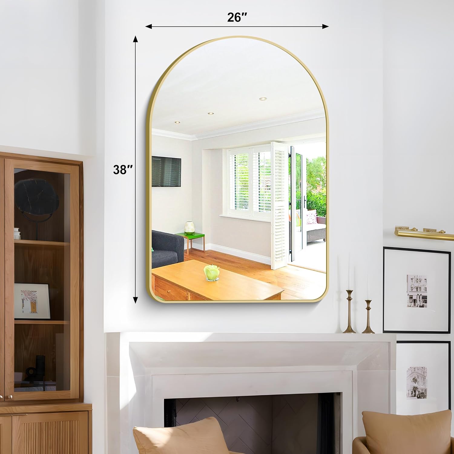 - Widely-Use Decorative Mirror: With gold arched mirror round corner and sleek frame, the wall-mounted mirror looks simple and elegant, fits for any decor style and makes room brighter. Great contemporary mirror for wall decor for over sink, bathroom, bedroom, entryway, living room, Gallery, Hotel, Salon and more.