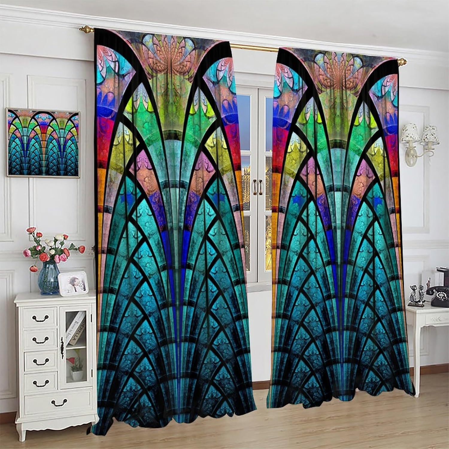 Stained Glass Curtains,Retro Design Style Colorful Abstract Art Home Decor Drapes for Bedroom Living Room Kitchen Window Treatment 2 Panels Set Total Size 72" W X 63" L Inch