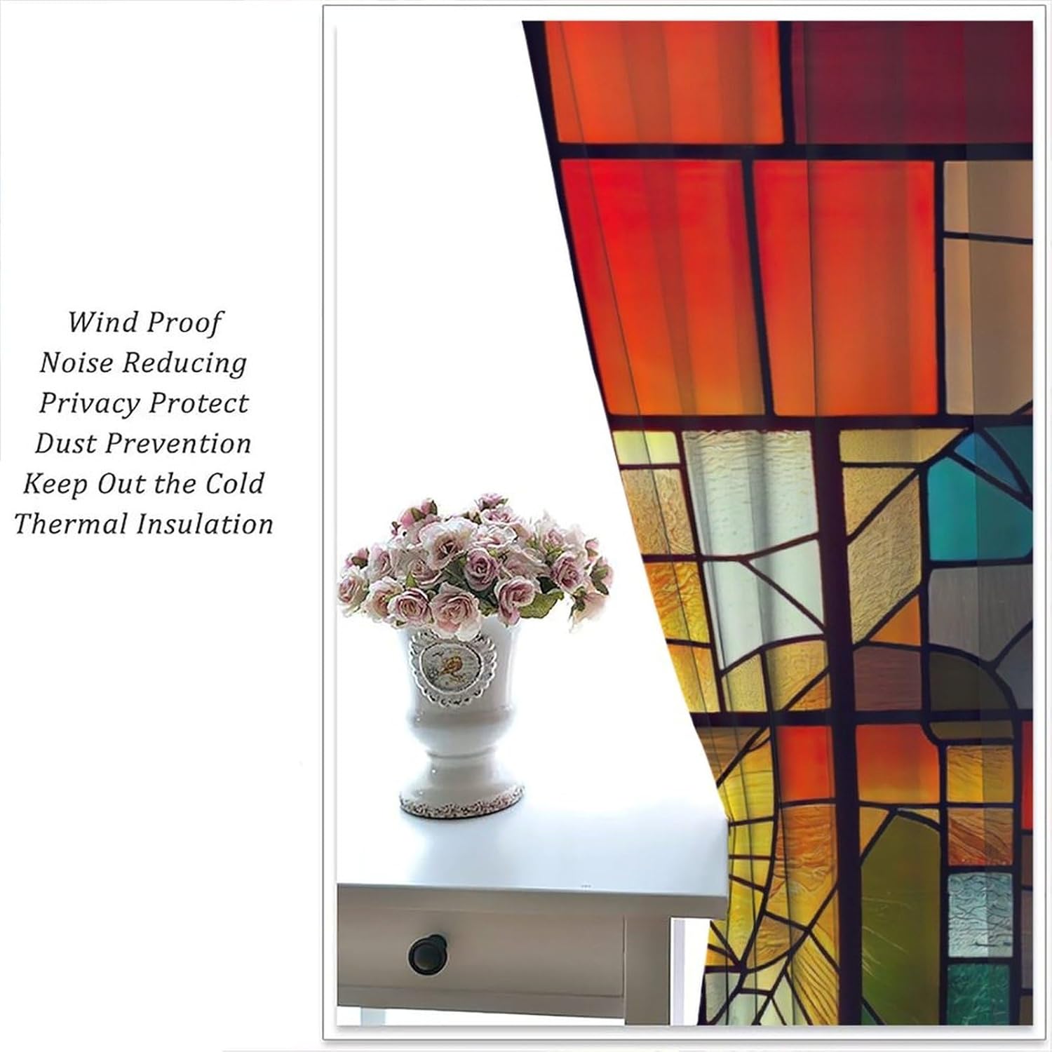 Stained Glass Curtains,Retro Abstract Colorful Geometry Textures Art Home Decor Drapes for Bedroom Living Room Kitchen Window Treatment 2 Panels Set Total Size 42" W X 45" L Inch