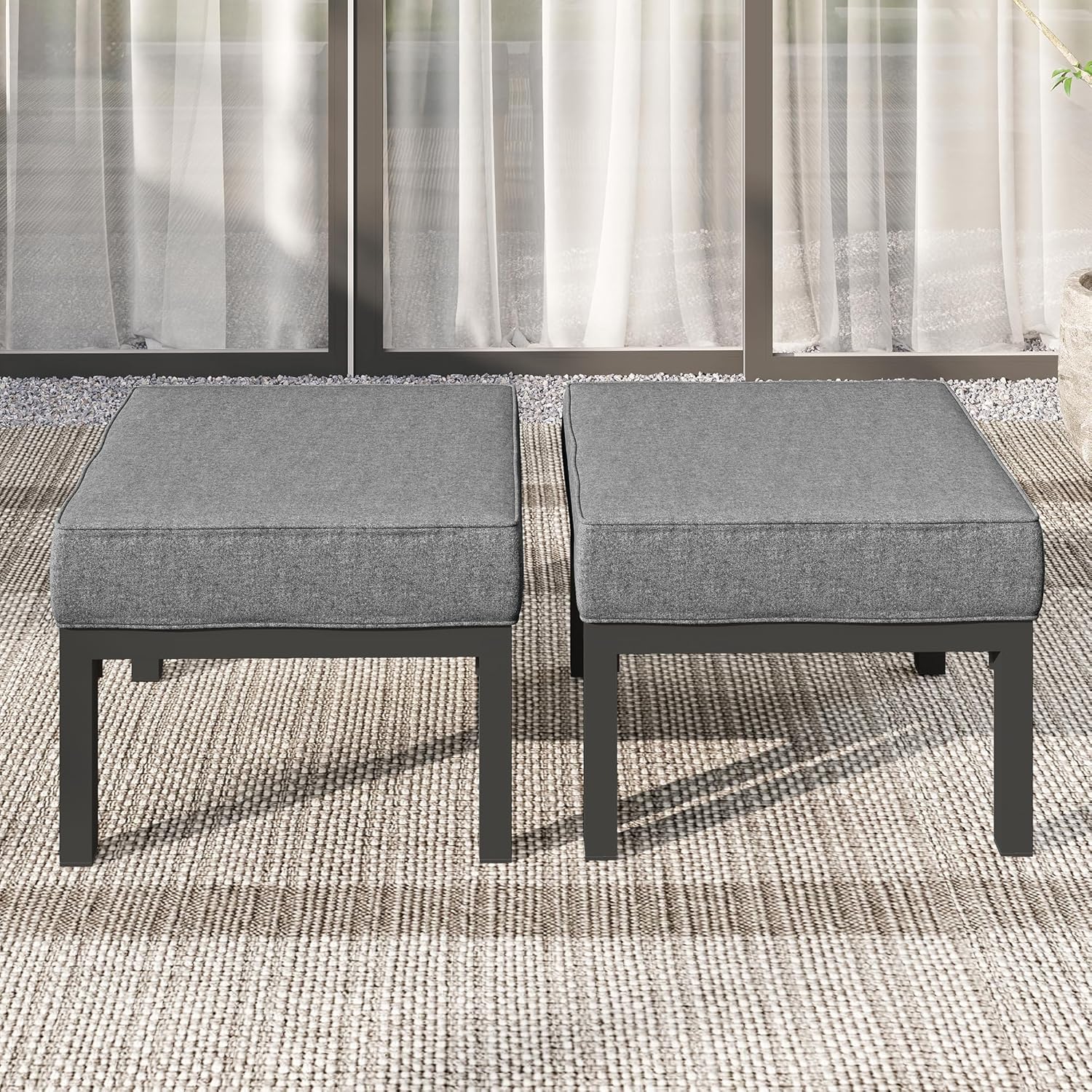Solaste Outdoor Footstools Patio Ottoman Set of 2, Aluminum All-Weather Outdoor Footrest Seat with Removable Cushions, Patio Furniture Ottomans for Garden, Backyard, Poolside-Gray