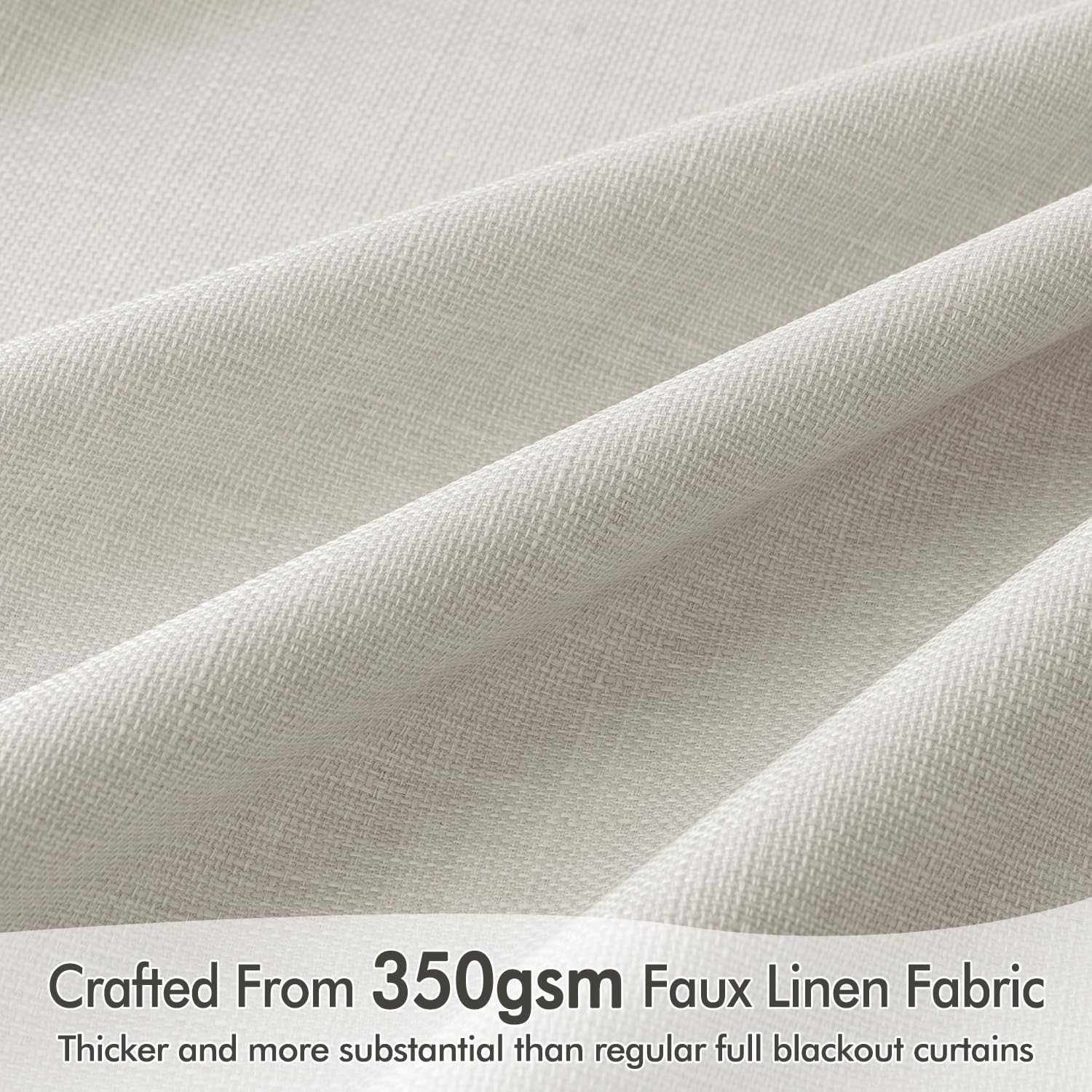 - INNOVATED MATERIAL: Crafted from premium thick linen-like fabric with a substantial weight of 350 GSM, these curtains surpass standard blackout options in thickness, luxurious texture, and functionality. The advanced four-layer coating ensures 100% light blocking, insulation against heat and cold, and effective noise reduction. The vintage burlap texture adds timeless charm and highlights their high-quality feel. Energy-efficient and durable, they provide privacy and a cozy atmosphere year-round