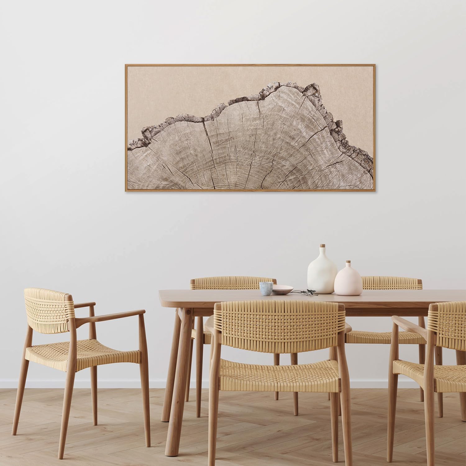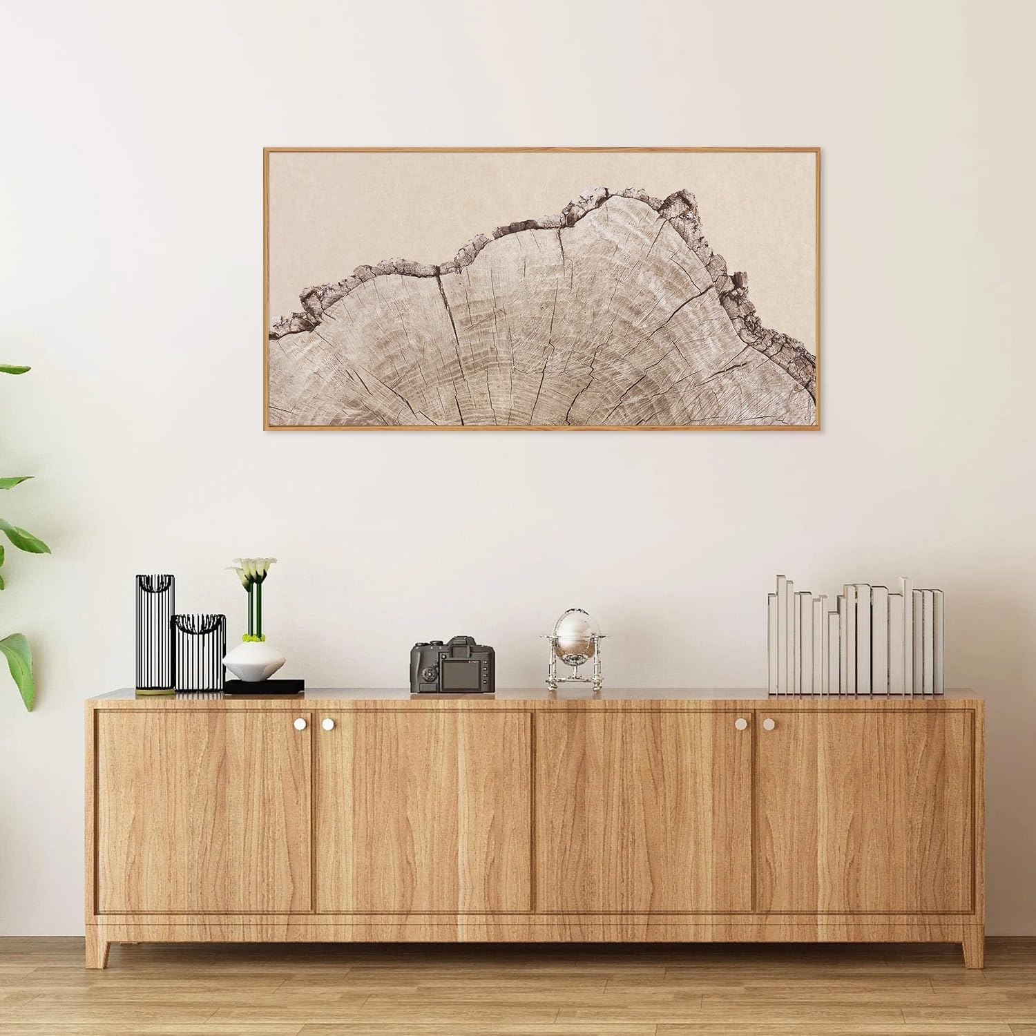 SIGNINART Large Tree Ring Framed Canvas Wall Art, Rustic Beige Wooden Wall Decor, Neutral Nature Wood Stump Artwork, Modern Art Prints for Bedroom Living Room Office 20"x40"