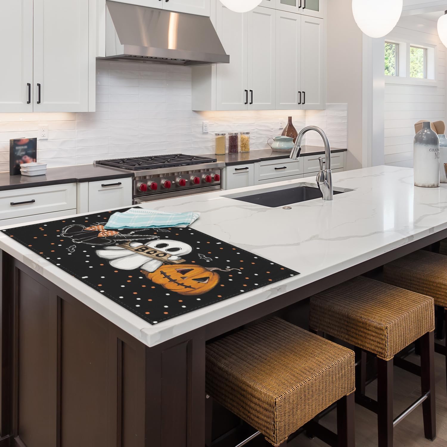 Artoid Mode Cat Ghost Pumpkin Halloween Placemats, 24x36 Inch Extra Large Table Mats for Kitchen Countertop Protector Dining Decoration
