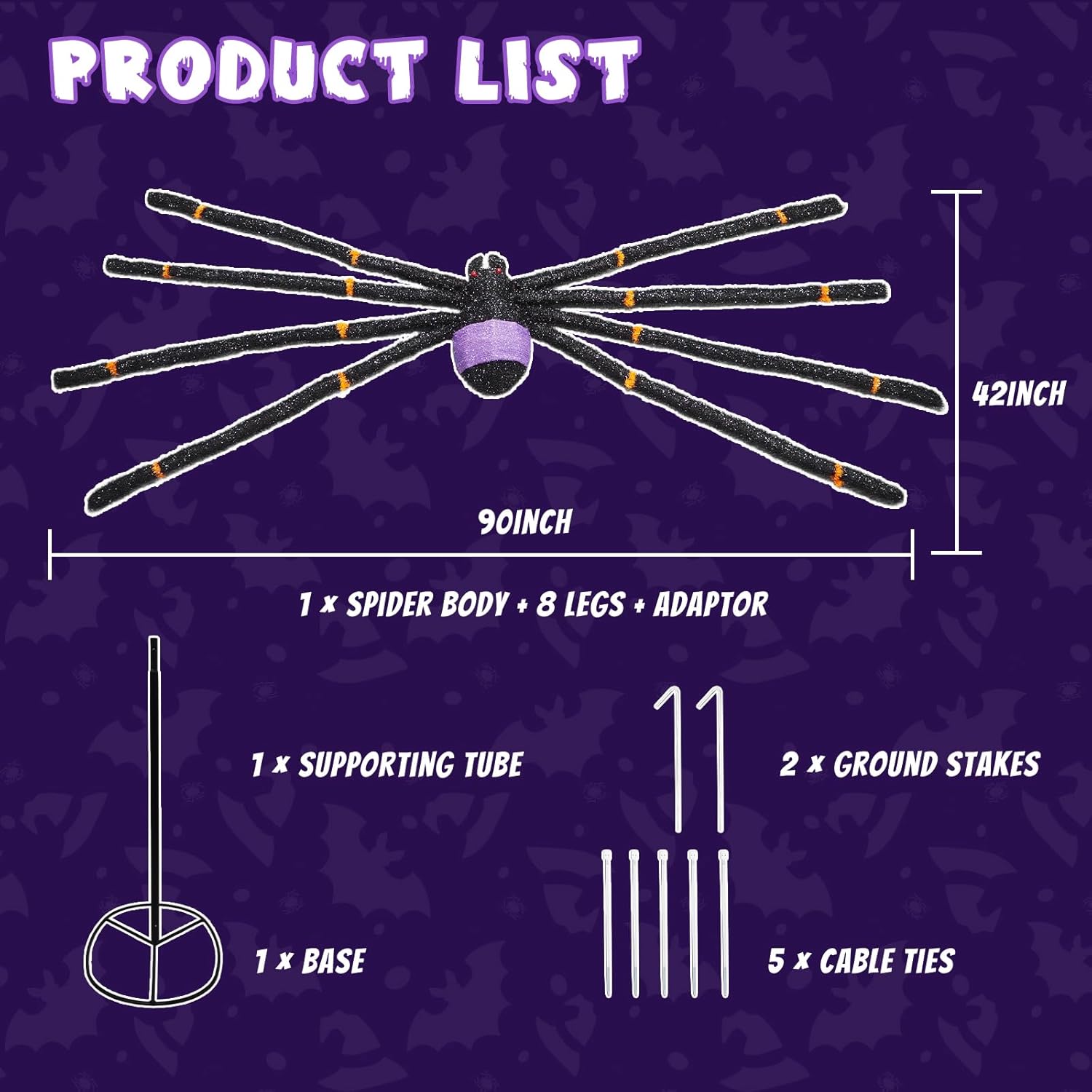 - 🔧 Effortless Setup Halloween Decorations: Package includes: 5ft power cord, cable ties, ground stakes, support tube & base—no tools needed.Assemble this massive scary spider (66" x 42" x 22") in minutes!