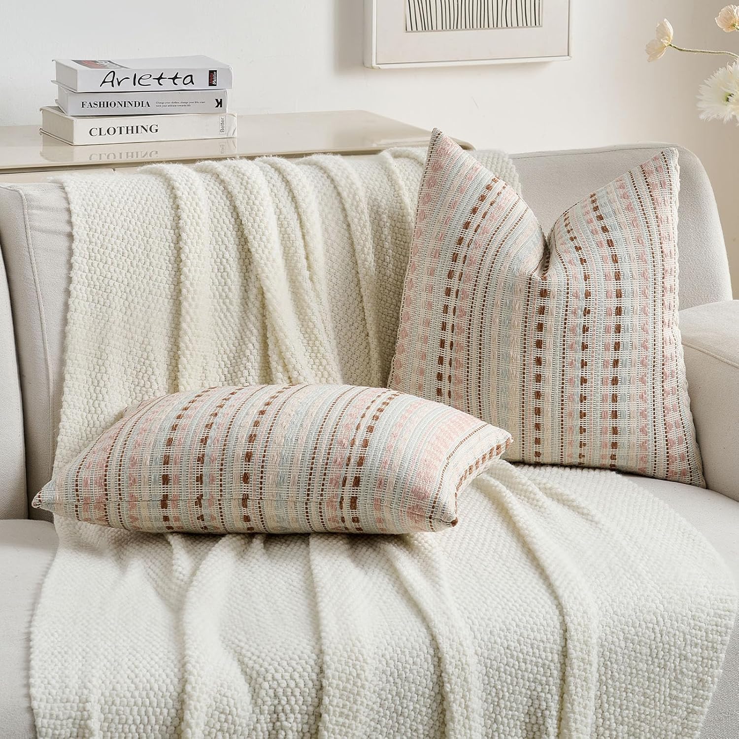 FUTEI Pink Blue Decorative Throw Pillow Covers 18x18 Inch Set of 2,Soft Cozy Chenille Jacquard Textured Cushion Case,Boho Home Decor for Couch Bed Living Room