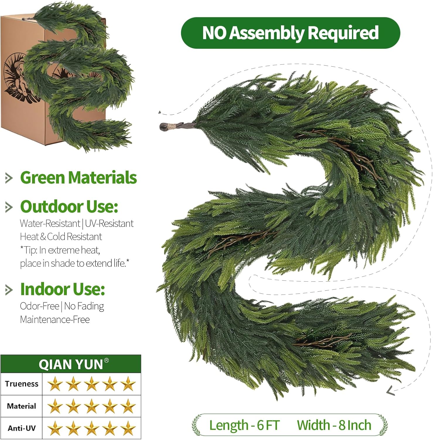 - 【Helpful Tips】For safe shipping, the greenery garland is slightly compressed. Simply fluff and shape after unboxing to restore its volume. Any light scent will fade within a few hours, leaving you with a fresh, beautiful decoration.