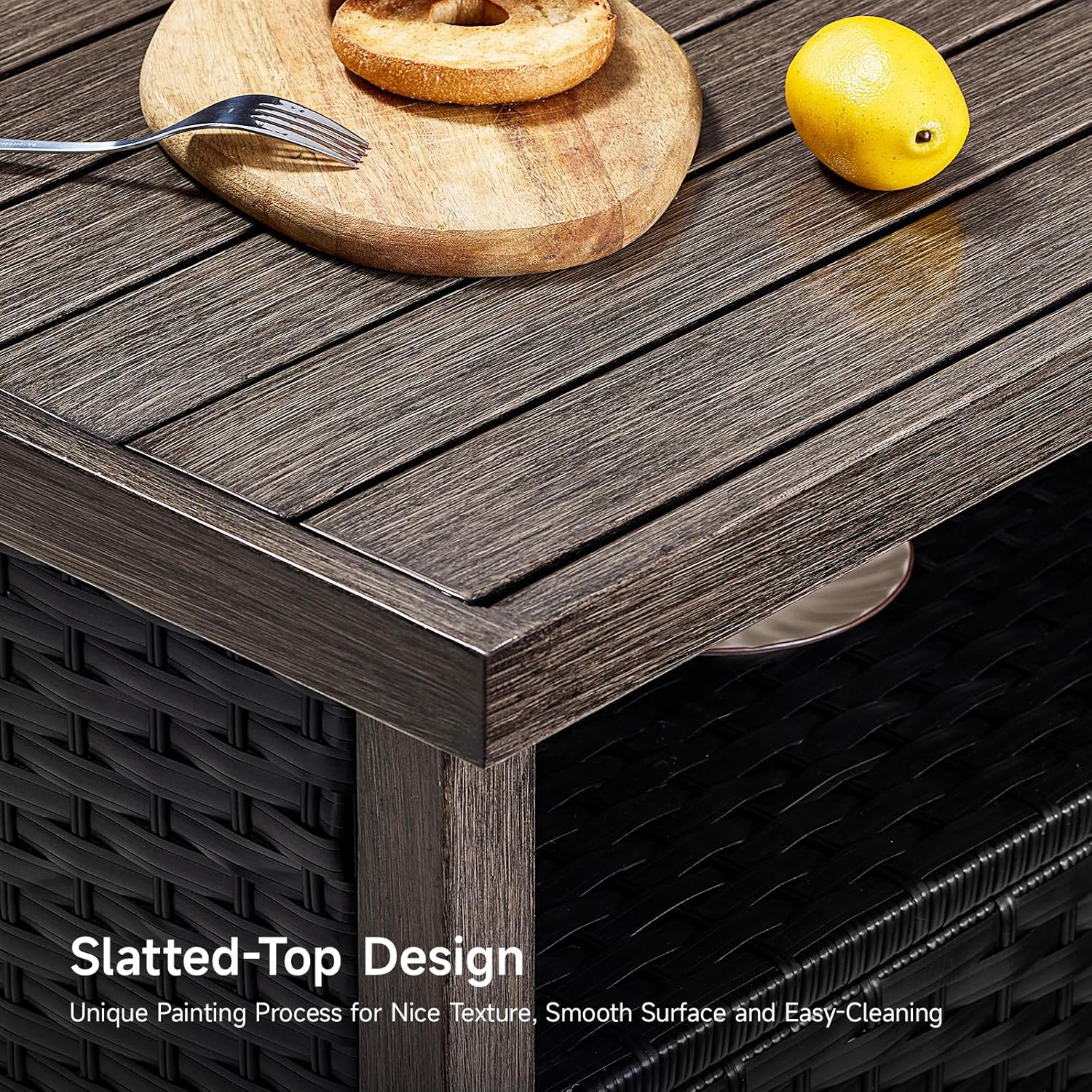 Outdoor Storage Cabinet, Woven Rattan Bar Table with 2 Doors, Slatted-Top, Wicker Console Table for Patio, Garden, Backyard, Kitchen - Black