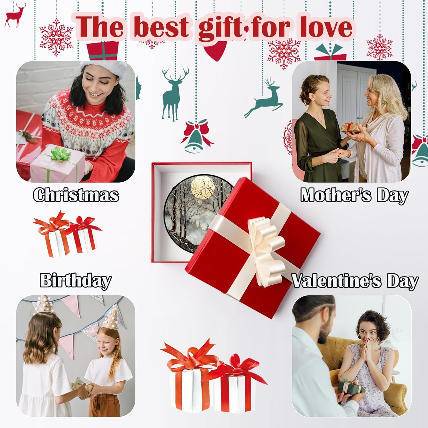 Stained Glass Window Hanging - Black and White Gold Moon Forest Sun Catcher for Door Home Decor Suncatcher Christmas Mother's Day Birthday Gifts for Women Men Lovers Mom Nana 6.3 in