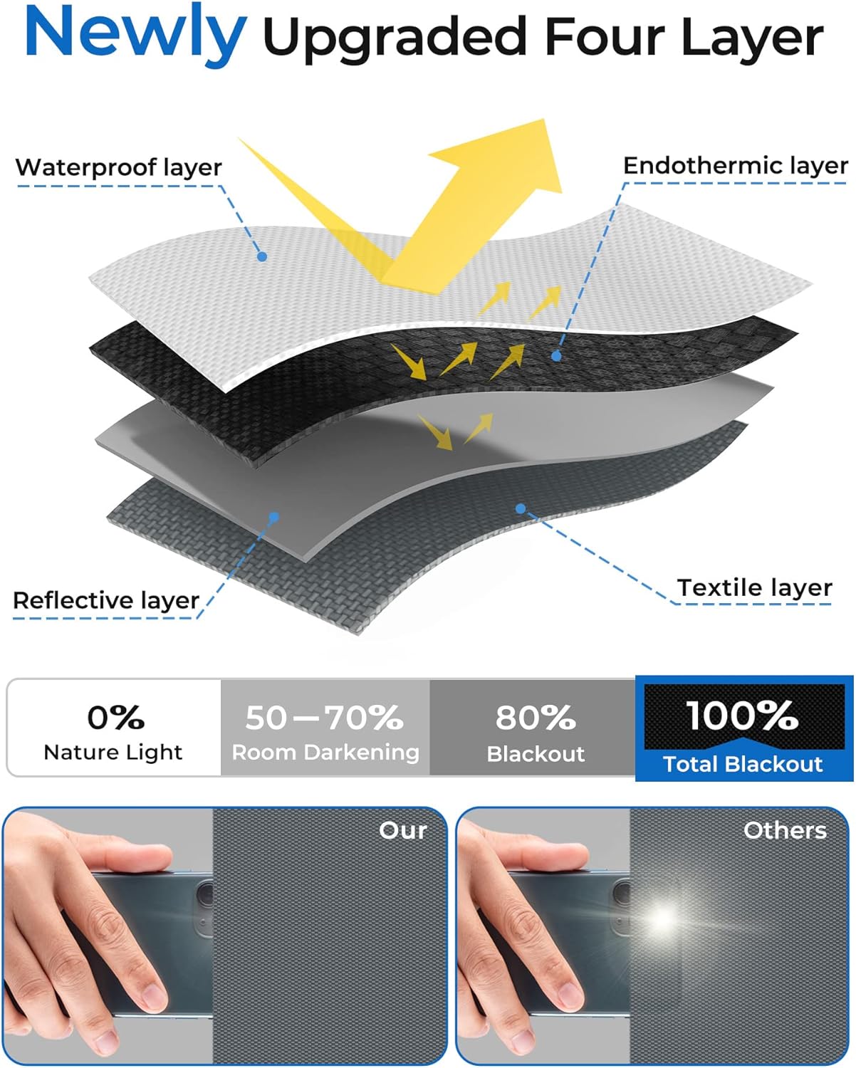 - 🌛【100% Blackout】Sumobaby blackout curtains adopts upgraded reflective silver coating and high-density black polyester, the blackout effect can easily reach 100%. Blocks sunlight and harmful UV rays to darken your room, thermal insulated and enhance privacy.