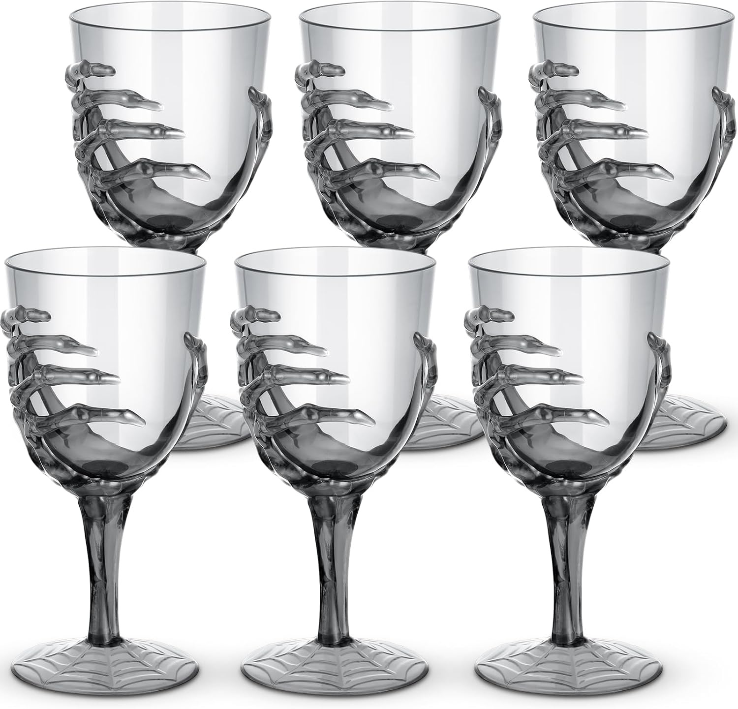 Dandat 6 Pcs Halloween Skeleton Hand Goblets 12oz Clear Plastic Halloween Cups Skull Wine Glass Set for Creepy Spooky Party Decorations (Black)