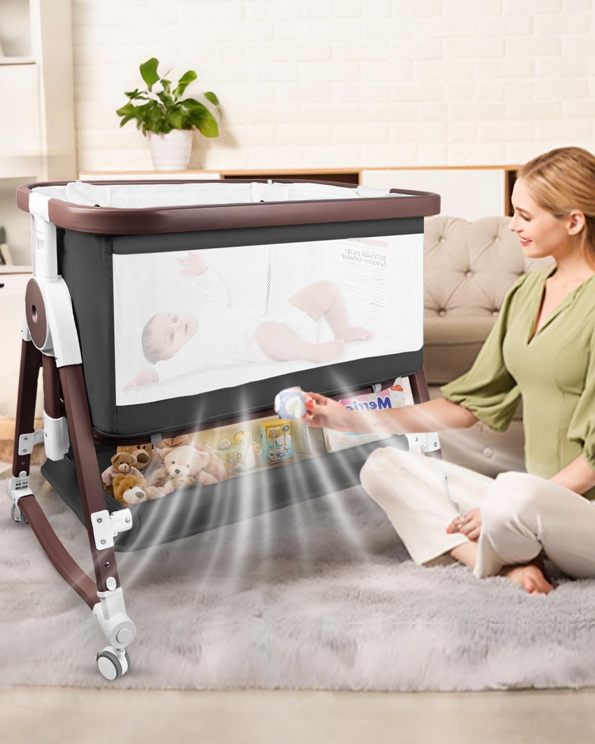 - Large Storage Space: The bottom of the bedside bassinet for baby is equipped with large, sturdy storage space for baby's toys, clothes, diapers and other baby essentials, making it easy for parents to quickly access them when needed