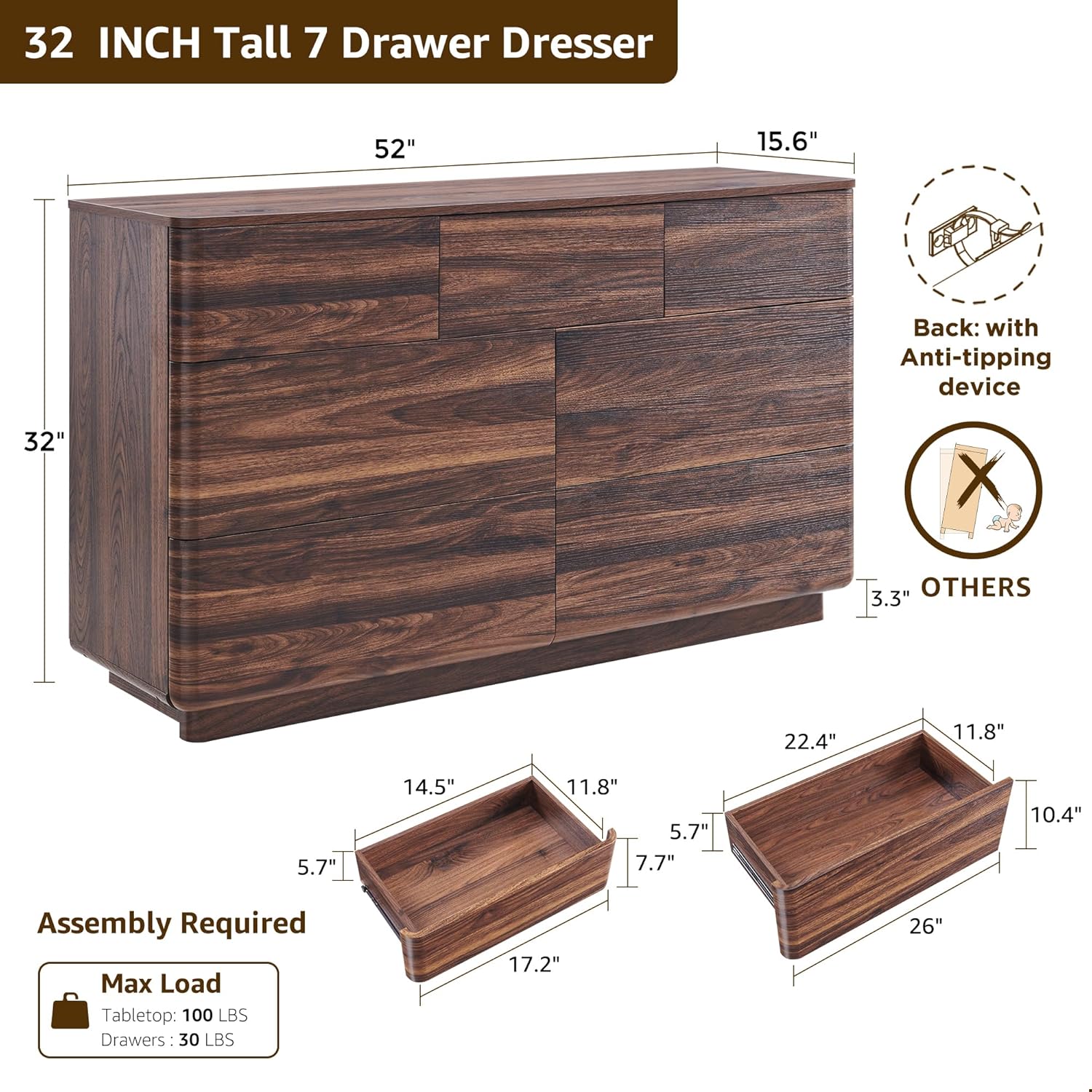 - Built to Last – Durable & Family-Friendly Construction: Made from FSC-certified engineered wood, this dresser supports up to 100 lbs and is built to withstand daily use. The thick 3.3" base adds stability, while the smooth, curved edges, refined finish, and scratch-resistant surface ensure long-lasting beauty and a family-friendly design. In addition, ACCOHOHO provides clear assembly instructions and labeled parts to make the setup process simple and stress-free