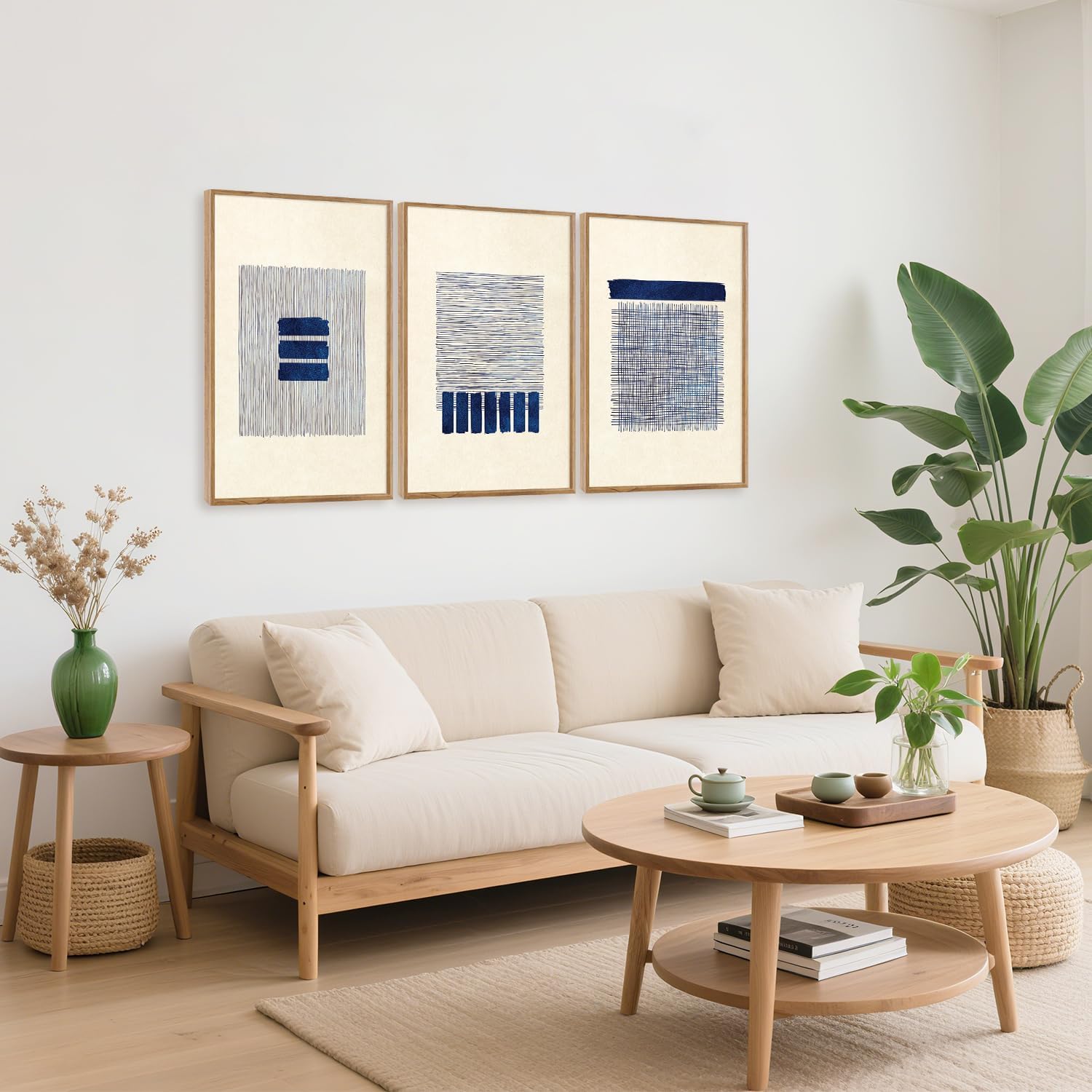 Aurlan Boho Christian Line Art Framed Wall Decor(16"x24"), 3PCS Minimalist Jesus Leavs the 99 Sheep Lamb Bible Story Canvas Artwork, Neutral Abstract Beige Navy Blue Religious Painting for Bedroom Living Room