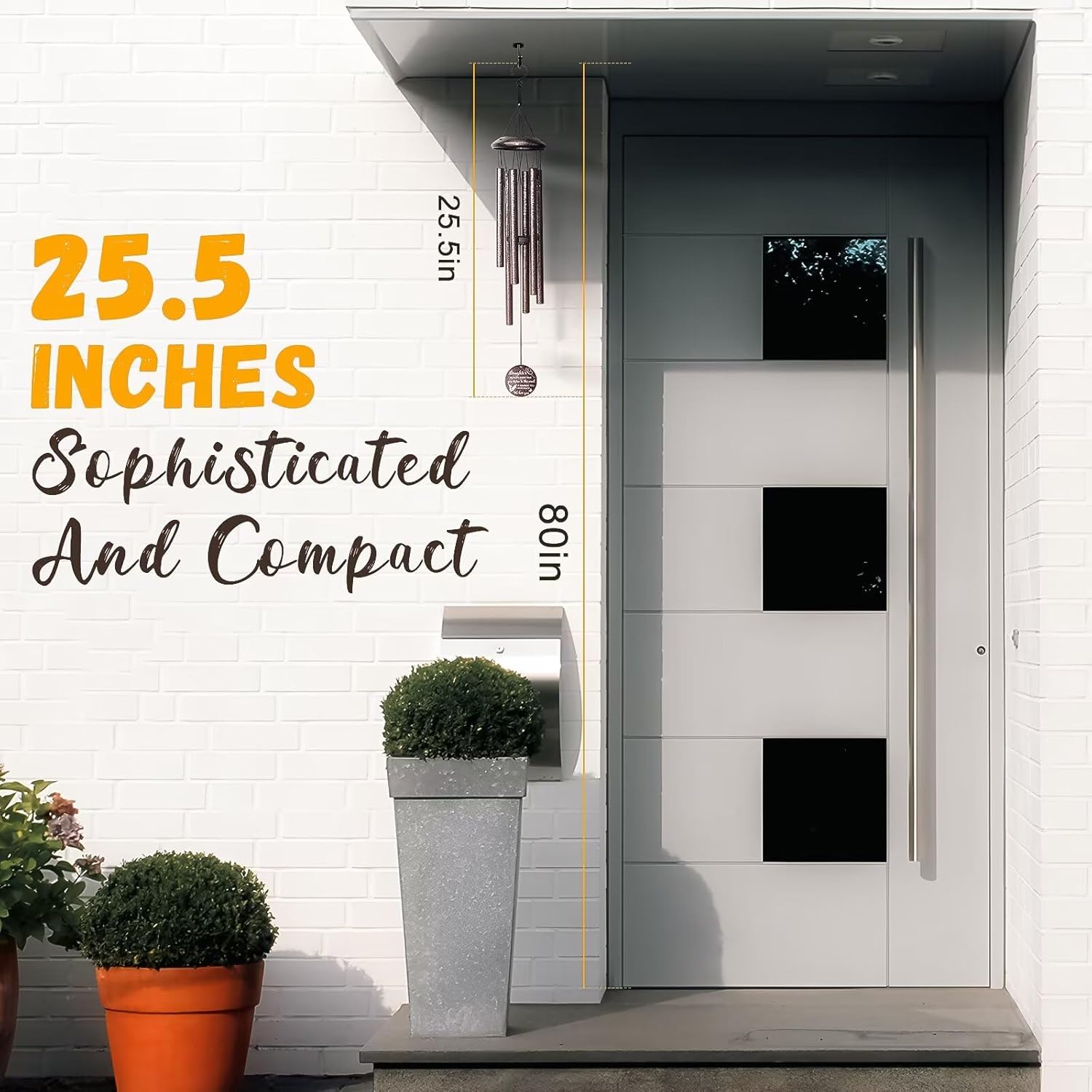 - 4.High-quality Craftsmanship:25-inch classic wind chime with 6 anodized aluminum tubes and UV-resistant ropes,Each tube are wrapped and protected. Waterproof and built to withstand outside all weather conditions.