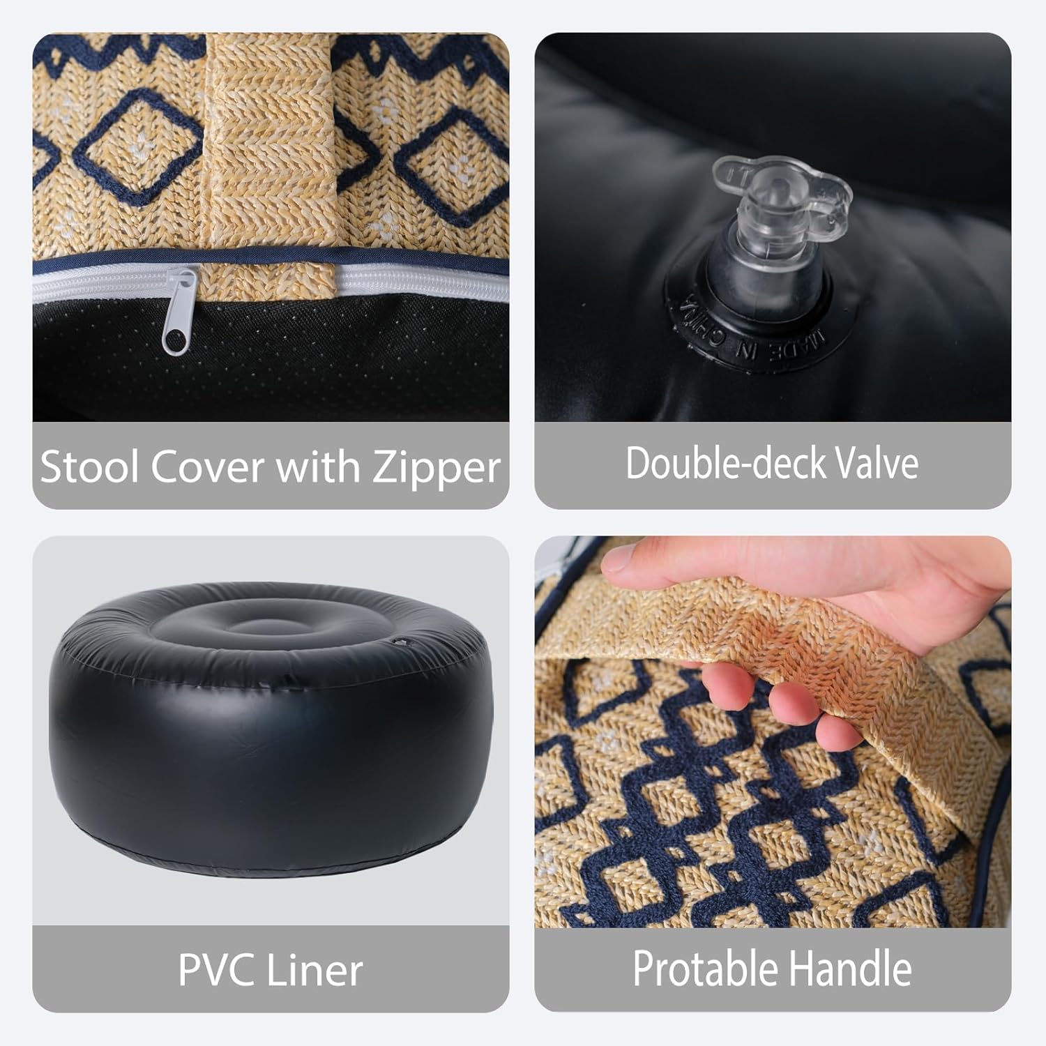 - Thickened PVC inner liner, anti-leakage design is durable. outdoor ottoman is light weighted enough for children to carry, but can also bear up to 220 pounds (100kg). It brings you comfort and sense of safety even if an adult sit on it.