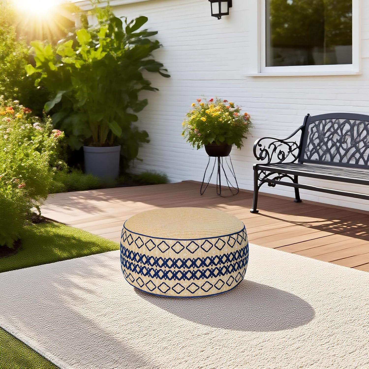 - Compact and portable after deflating, can go well with your deck, patio, front porch, backyard, garden, screened room, serve as a footstool, extra seat or a small table with a tray on.
