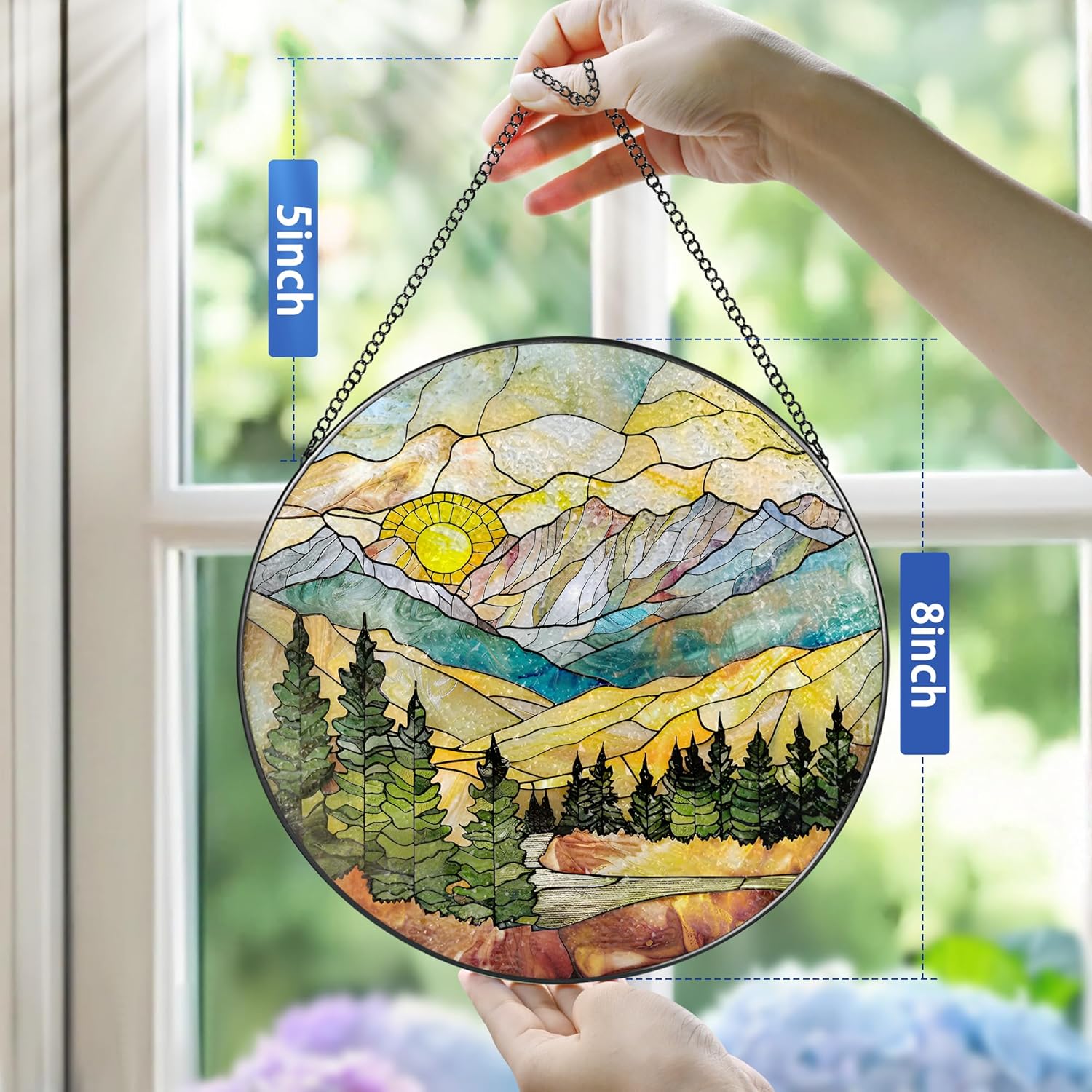 Stained Glass Window Hanging - 8 Inch Mountain Range Suncatcher for Window Doors Home Decoration, Valentine's Day Mother's Day Christmas Birthday Gifts for Women, Men, and Mom Grandma