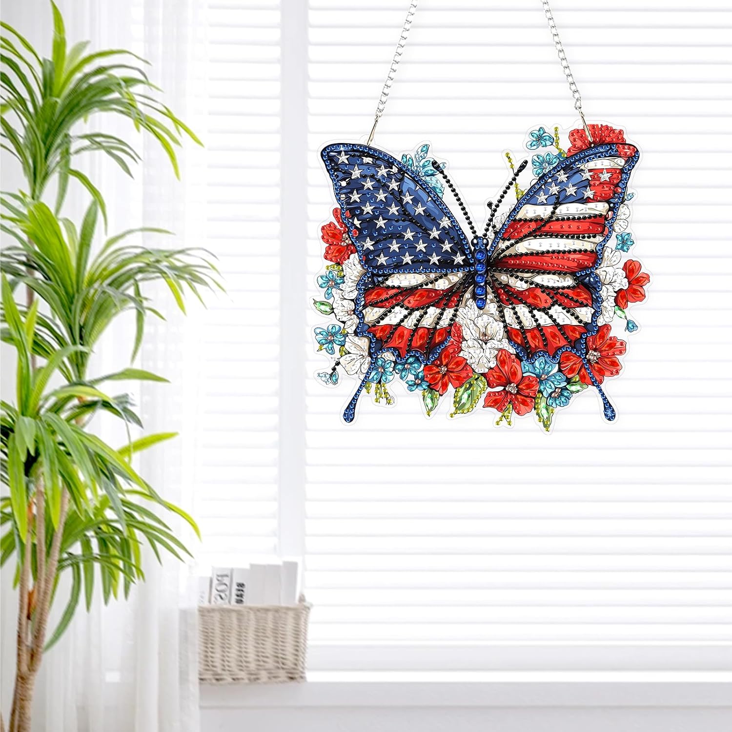 Lxmsja DIY Butterfly Diamond Painting Hanging Ornament, Double-Sided Acrylic American Flag Diamond Art Kit, Special Shaped Drill Pendant Window Art Kit, Suncatcher Hanging Craft Decoration 7×8 inch