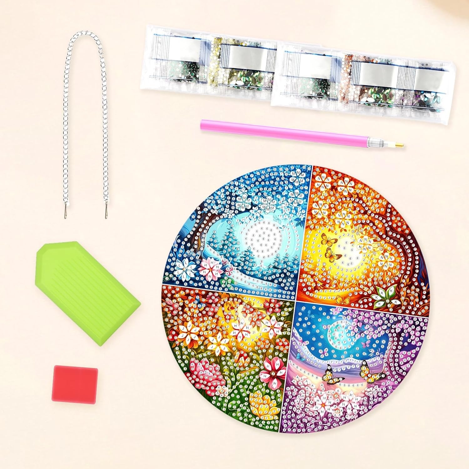 Lxmsja DIY Four Seasons Diamond Painting Hanging Ornament, Double-Sided Acrylic Landscape Diamond Art Kit, Special Shaped Drill Pendant Window Art Kit, Suncatcher Hanging Craft Decoration 8x8 inch