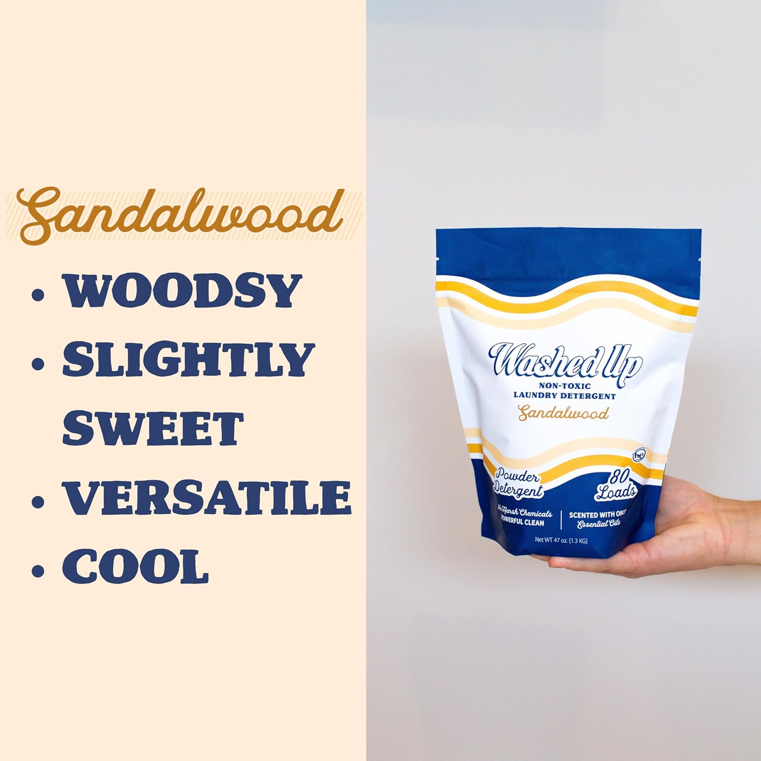 Sandalwood Laundry Detergent Powder | Only 100% Pure Essential Oils | Safe for Sensitive Groups | Powerful Clean | Plant & Mineral-Based | Made in USA | 3lbs