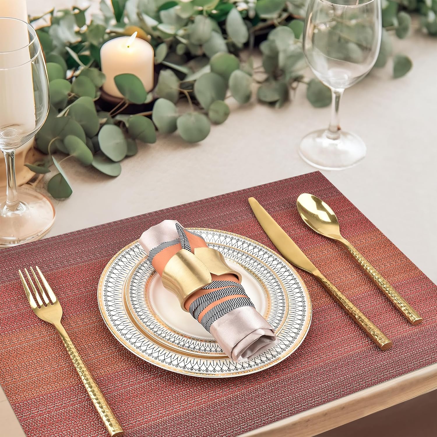 Placemats Set of 6 - Easy Clean Washable Vinyl Placemats - Wipeable Heat Resistant Table Mats for Dining Table - 17.7x11.8 Inch (6, Red Gradient)