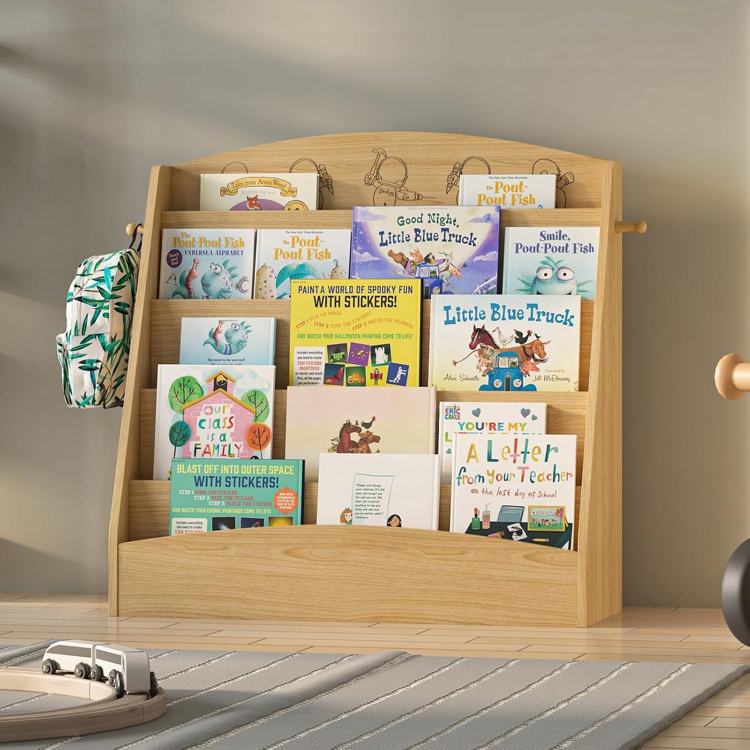 - Child-friendly Height and Design:The height of this front facing montessori bookshelf is not chosen randomly. This kids bookcase is deliberately designed to meet children' height. Our baby bookcase is standing on the floor at just the right level for all toddlers and preschoolers.
