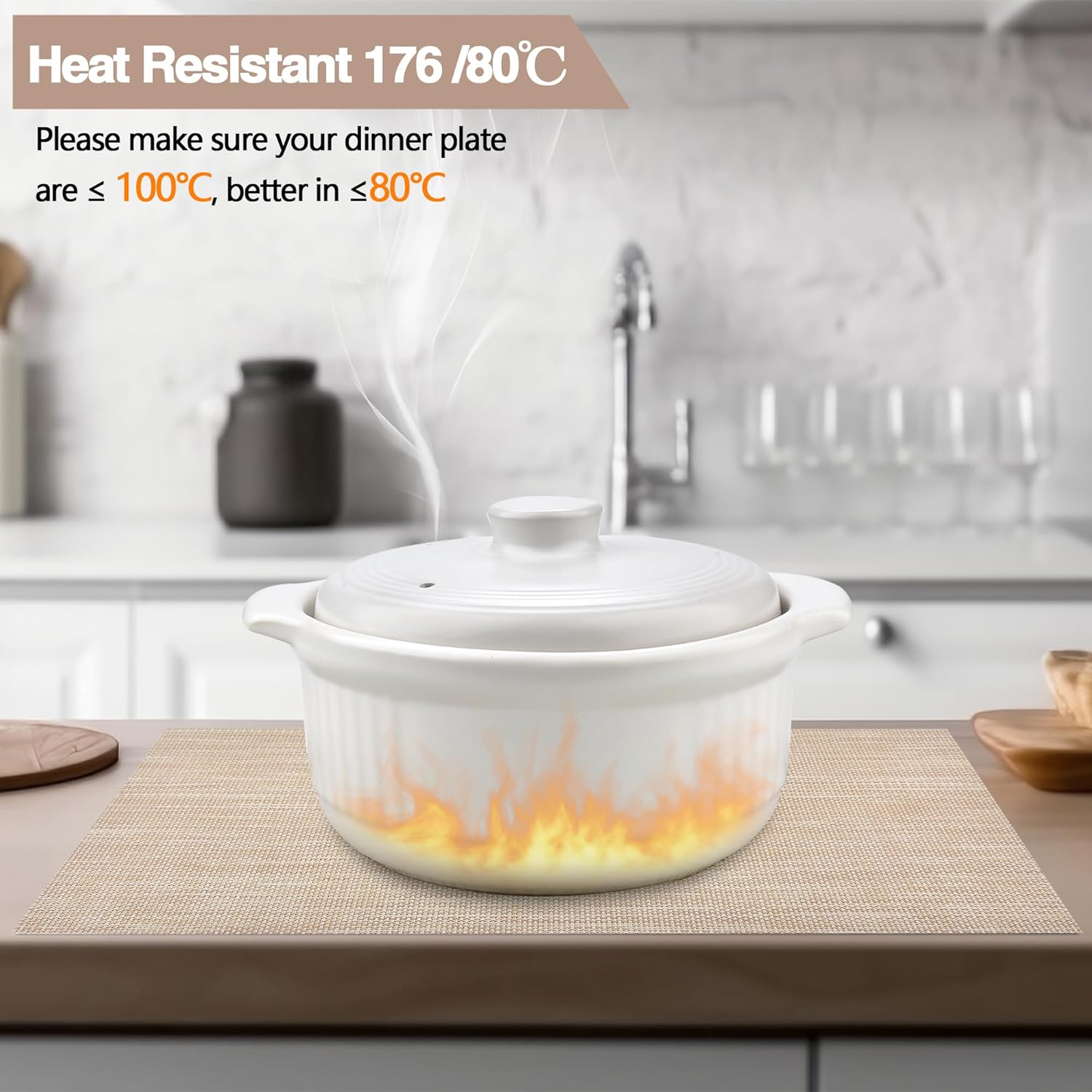 - Heat Resistant: Please make sure your dinner plate are ≤ 100℃, better in ≤80℃. It can prevent the table from slipping and scalding the countertop. These beautiful stylish vinyl place mats to add more fun to your dining table