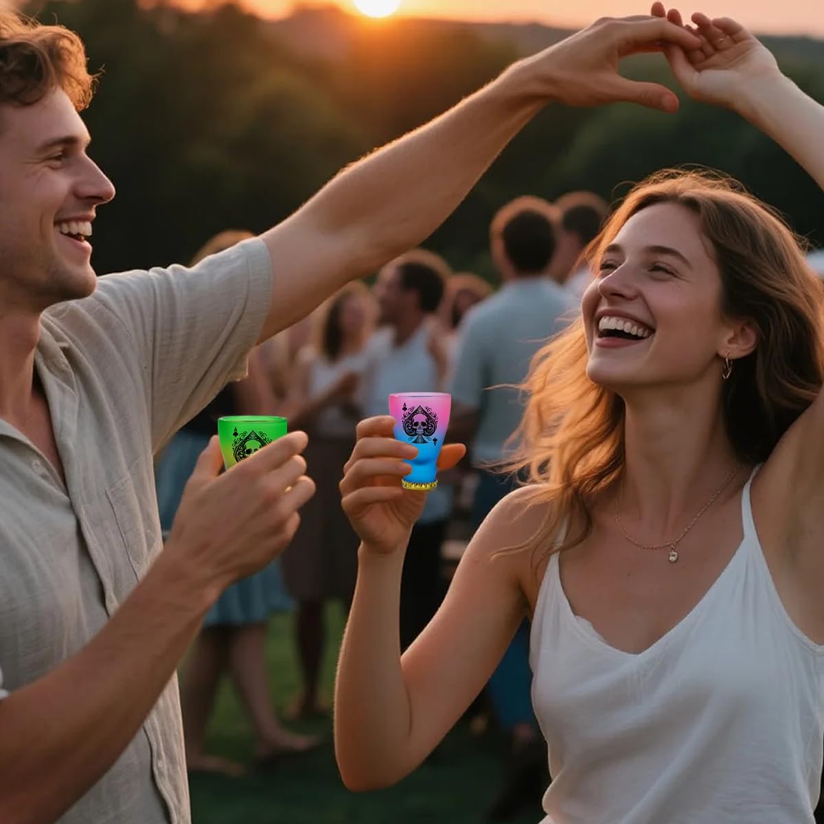- Skull Design with Black Spades Pattern: Each shot glass has a fascinating spade skull pattern design with a unique golden wine bottle cap at the bottom, adding a touch of sophistication and intrigue to your drinkware collection