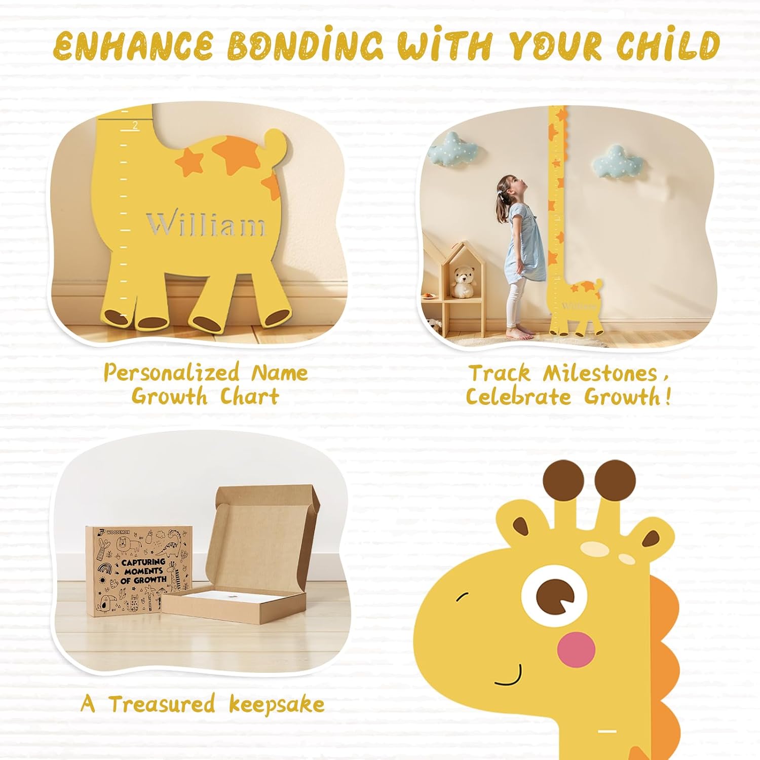 - Personalized Name Growth Chart: The height ruler wall tape can customize the name, measurement scale (centimeters or inches) for a personal touch, attracting the baby's attention. Kids height wall chart creates precious childhood memories, making measuring height interesting and not boring.