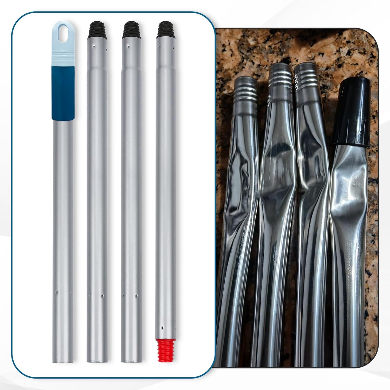 - Long Handle Scrubber Brushes- 55” long no bending handle is perfect for reaching high walls and low corners without straining. 3/4" extra thick steel handle is safe for daily cleaning. With hanger hole for easy storage