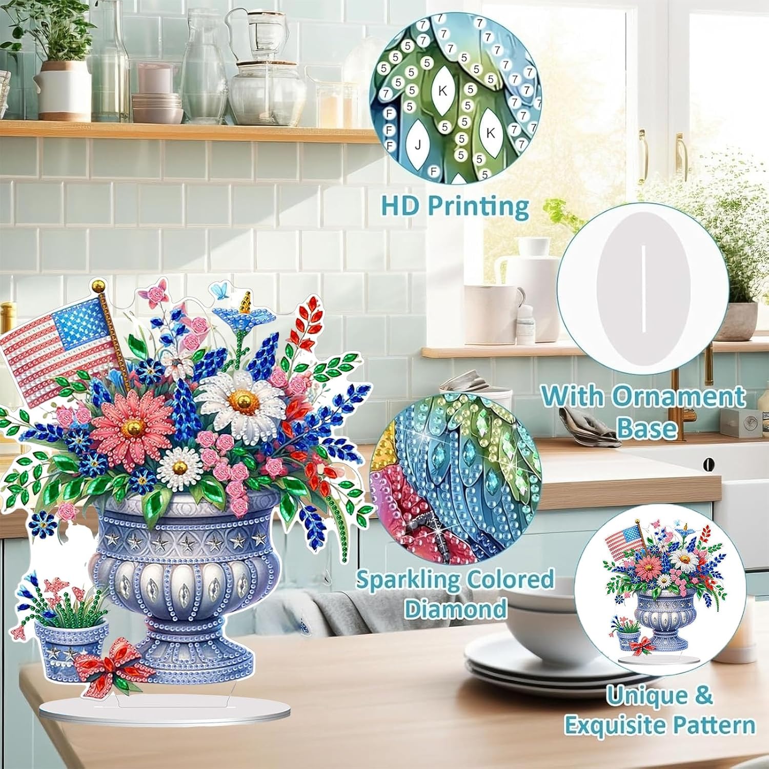 - 【Home Decor】:Diamond Art Painting ornament with base design, you can place it in your living room, fireplace, cabinet, shelf and other places you like. The combination of single-sided sparkling diamonds and the beauty of shaped diamonds enhances the visual appeal and uniqueness of the artwork, and the inlaid rhinestones refract the shimmering luster under the light.