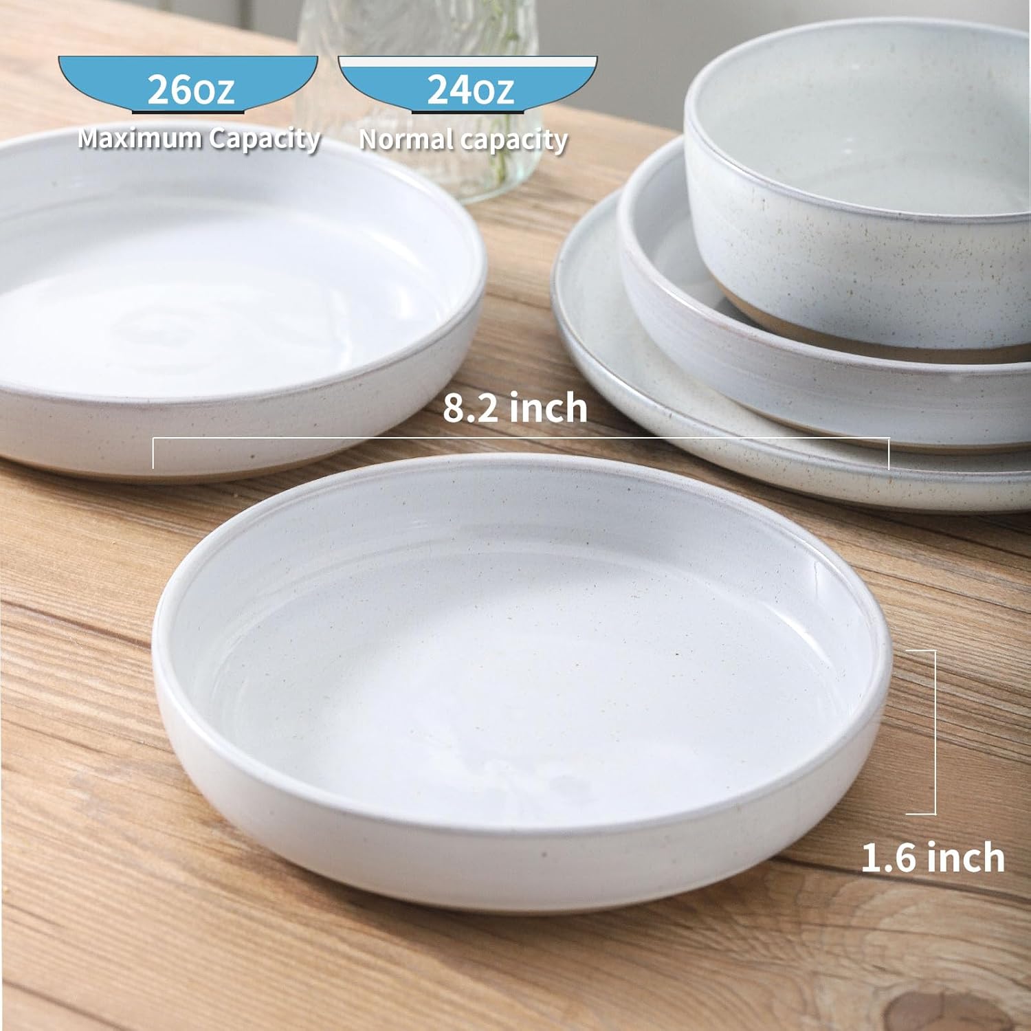 Pasta Bowls 26 OZ,Ceramic Salad Serving Bowls Set of 4,Large 8.2 inch Shallow Bowls Plates for Soup,Fruit,Noodle,Dinner,Dishwasher & Microwave Safe,White
