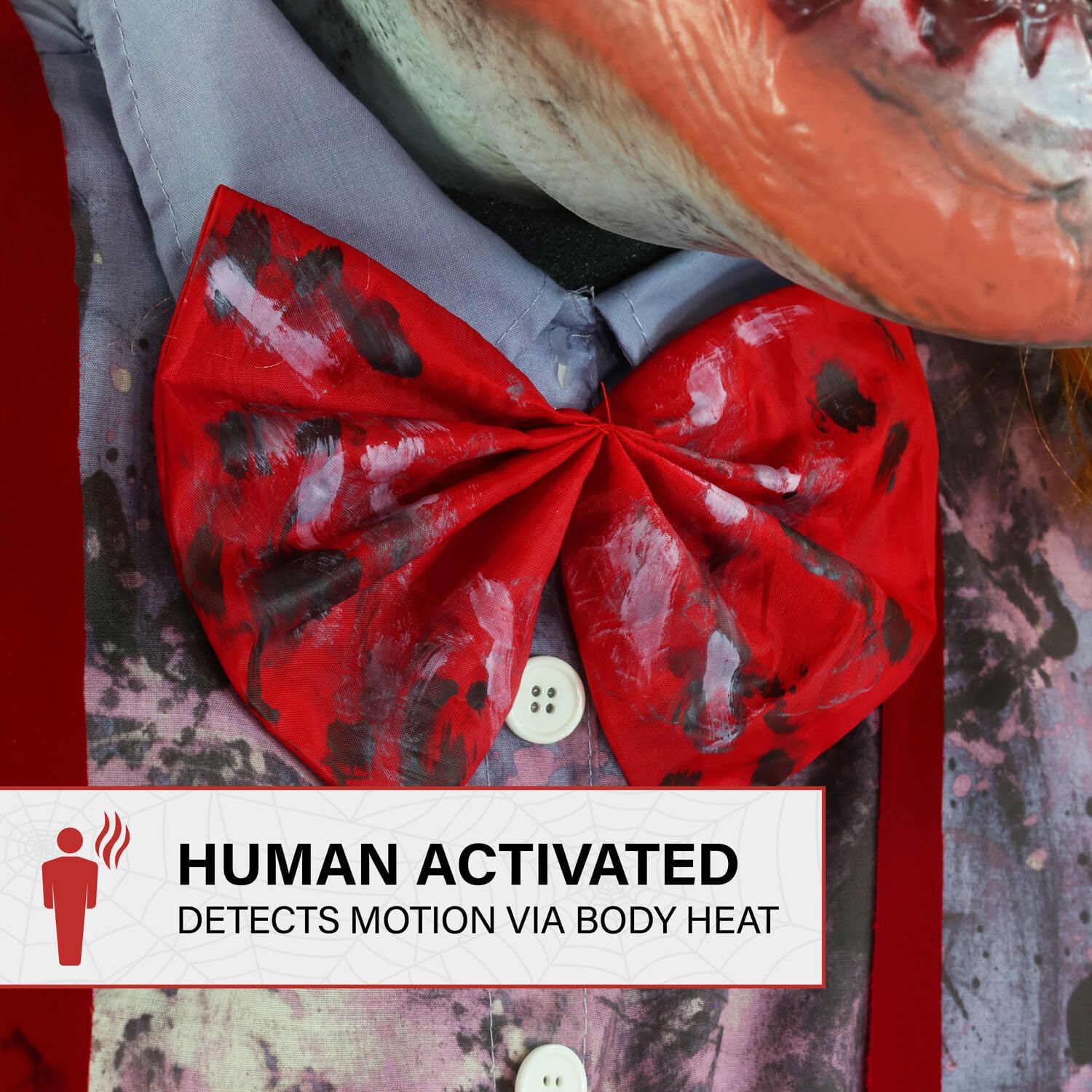 Haunted Hill Farm 6.5-Ft Animatronic I Scream Clown by Tekky, Halloween Animatronic, Creepy Party Decor, Indoor & Covered Outdoor Spooky Party Decoration Motion-Activated Lights & Sound, LifeSize