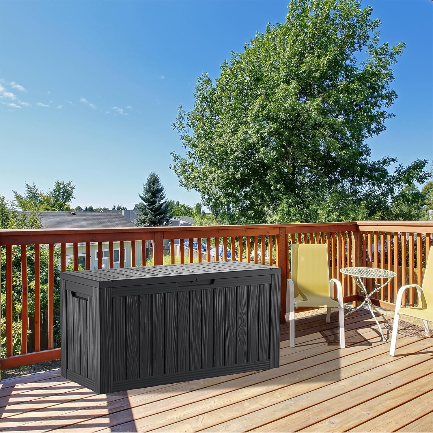 - Material: The patio outdoor storage box is made of the latest high-quality resin material, which makes this patio deck storage box waterproof,UV-resistant, anti-fading, and anti-bending protection, suitable for long-term outdoor use.