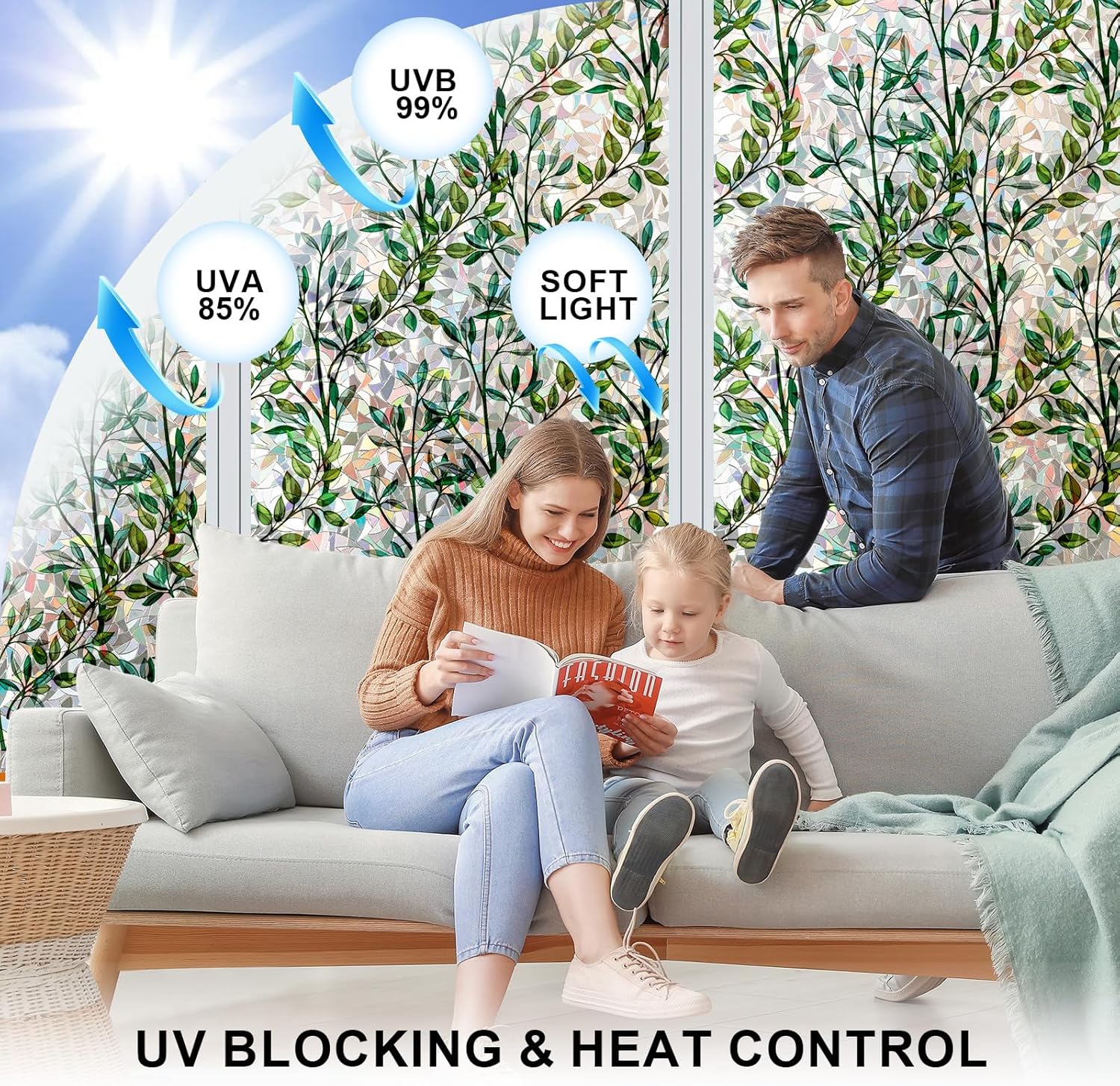 - 【UV Rejection & Heat Control】Stained glass window film made of premium vinyl material can blocks up to 85% of UV. Not affecting natural light and effectively reducing glare. It allows you to enjoy a cooler and more comfortable indoor environment with privacy window film, while slowing down furniture fading and skin damage