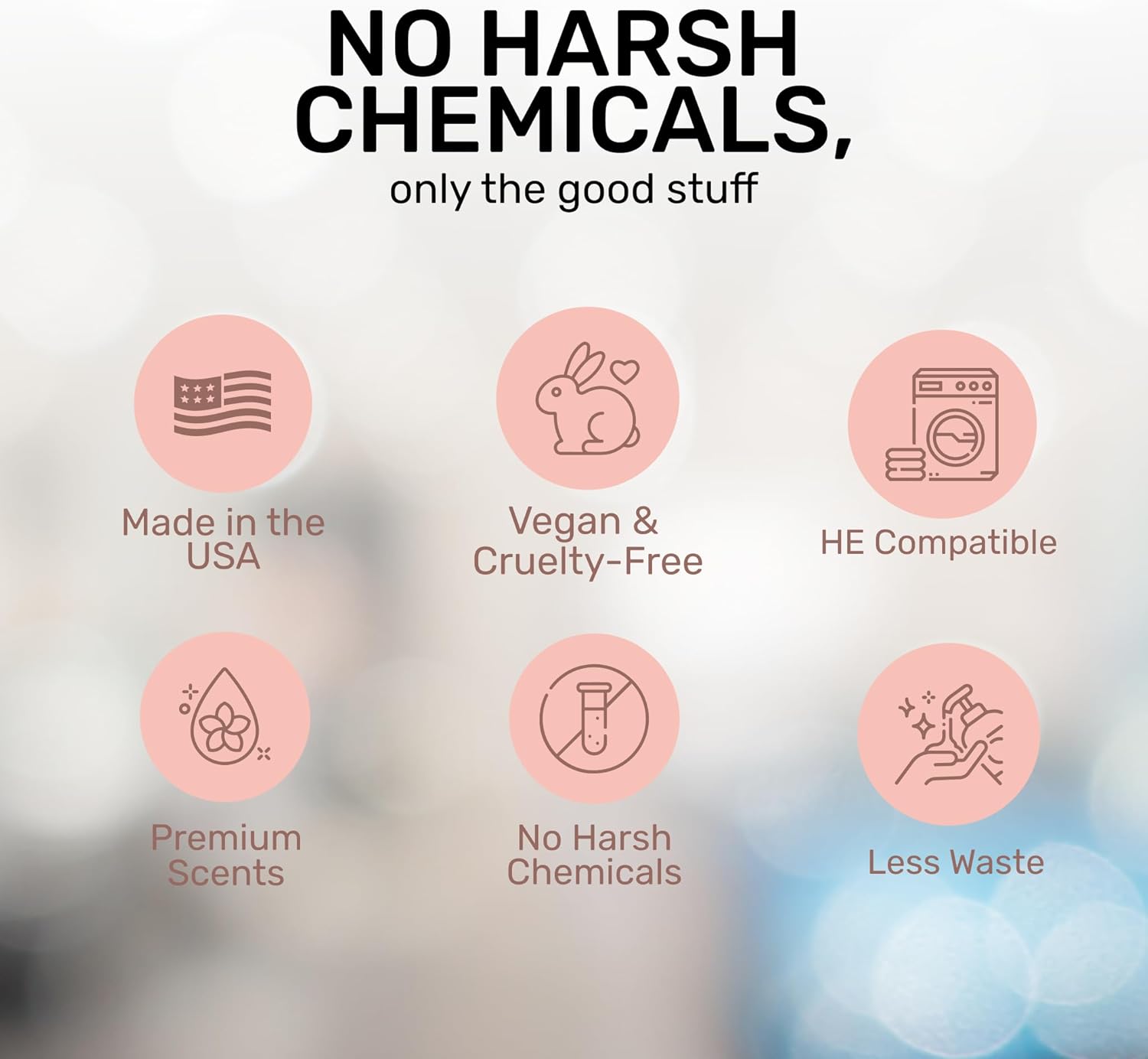 - YOUR CLOTHES WILL LOVE IT - We designed this concentrated blend of gentle washing detergents and natural fragrances to soften and reduce wrinkles and eliminate odors, stains, and dirt. Our high efficiency laundry detergent is ideal for everyday laundry, including cottons, linens, blends, and durable synthetics. It's also safe for whites and all colors, and you can use it in hot, cold, hard, or soft water.