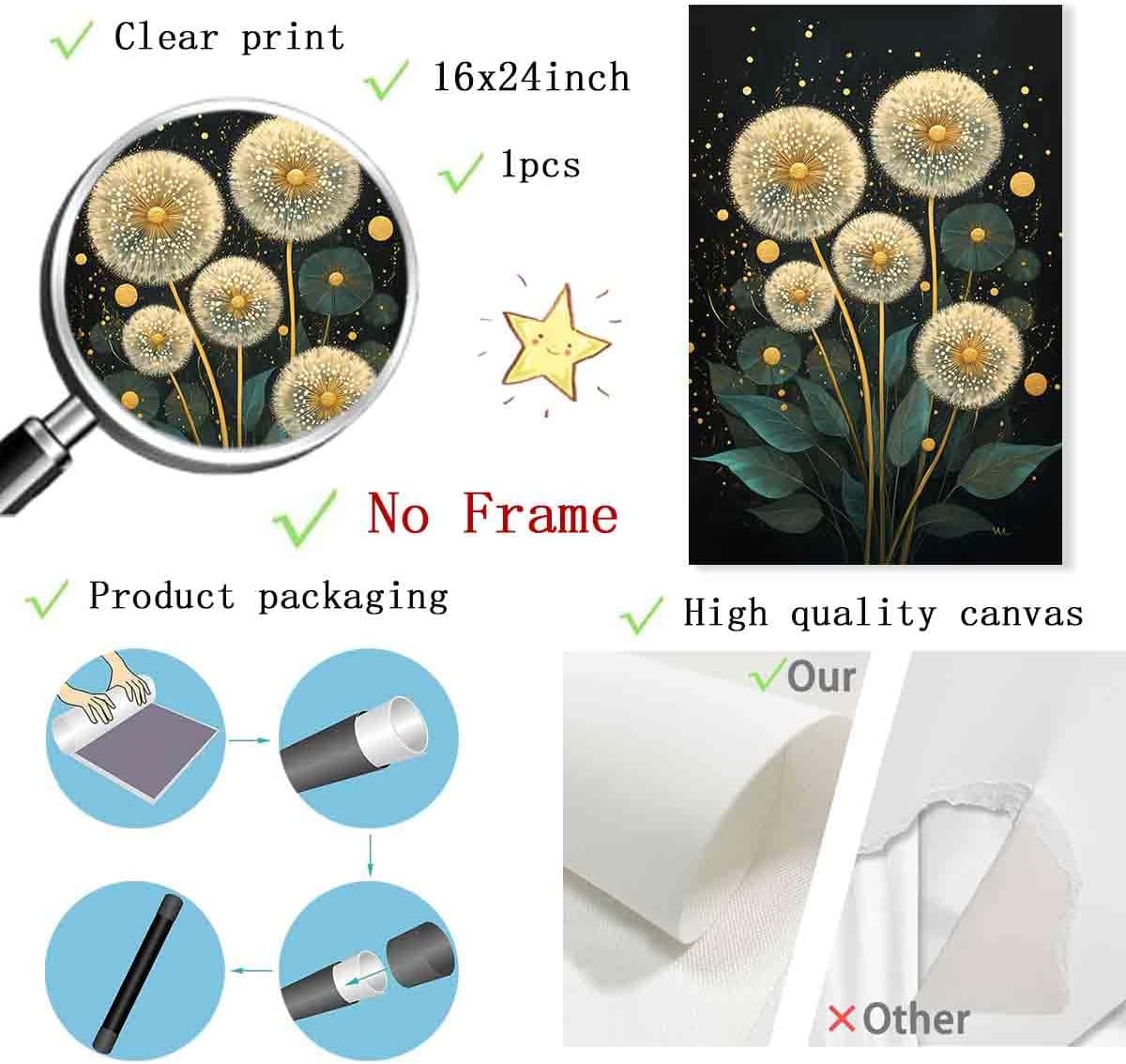 - 1.Canvas wall art specifications:Size:16X24inch,frameless,high-definition canvas wall art prints,printing pictures on canvas,using high-quality environmentally friendly ink,not easy to fade. The colors are beautiful and shiny,high-definition Giclee modern canvas print artwork.