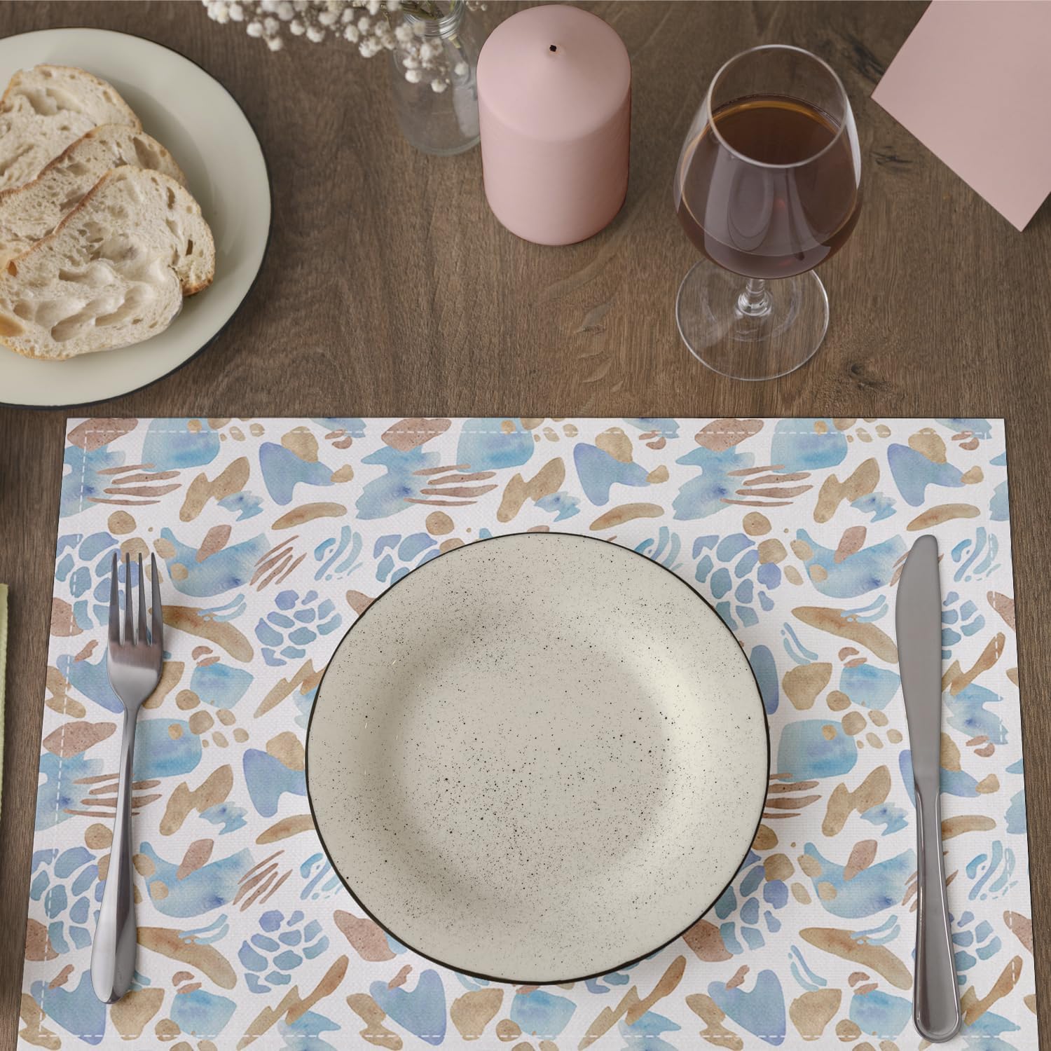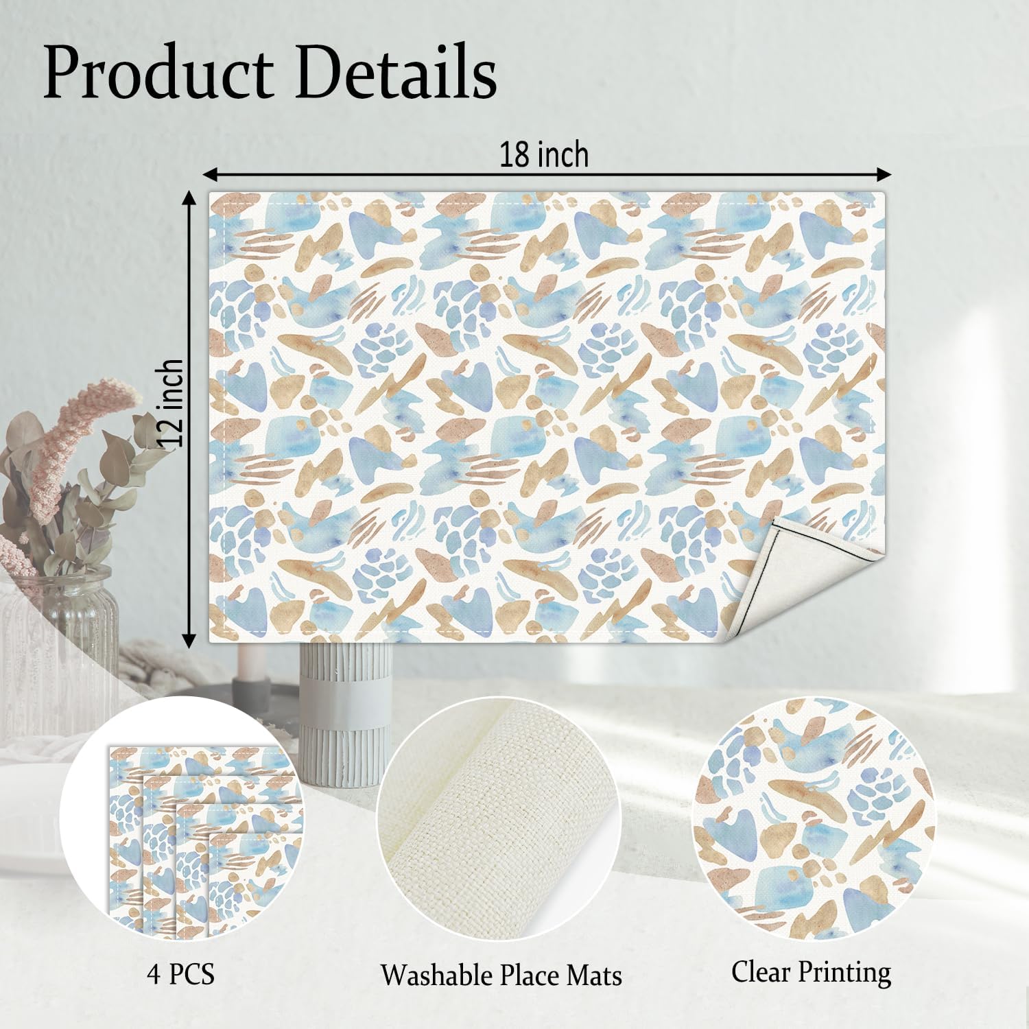Blue and Brown Placemats Set of 4, Watercolor Table Mat for Home Kitchen, Restaurants, Outdoor Linen Washable Place Mats 12x18 inch Party Event Dining Decoration-07