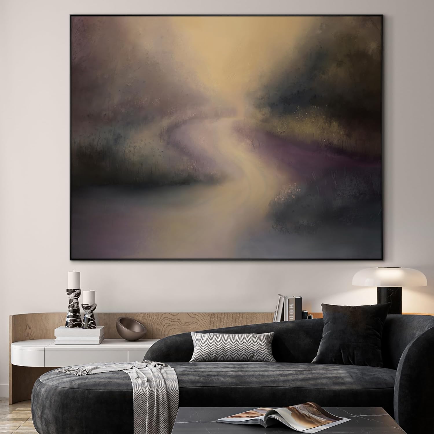 SIGNWIN 60"x72" Extra Large Framed Wall Art Golden Light River Path Dreamy Impressionist Landscape Illustration for Home Living Room Bedroom Decor (Frame Assembly Required)