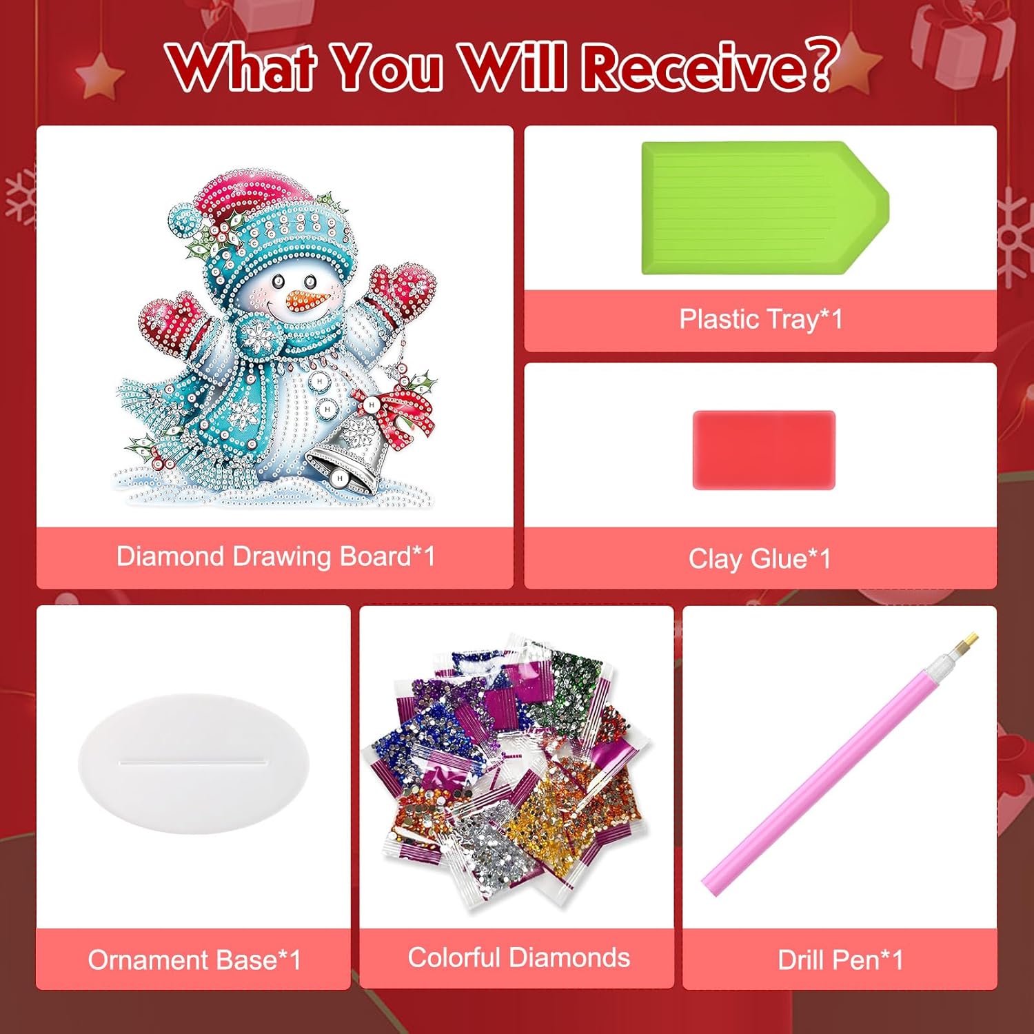 MEIYUDA Christmas Diamond Art Tabletop Kits, Christmas Snowman Diamond Art Painting Desktop Ornaments for Adult, DIY Special Shaped Crystal Desk Placement Ornament for Home Office Decor Crafts Gift