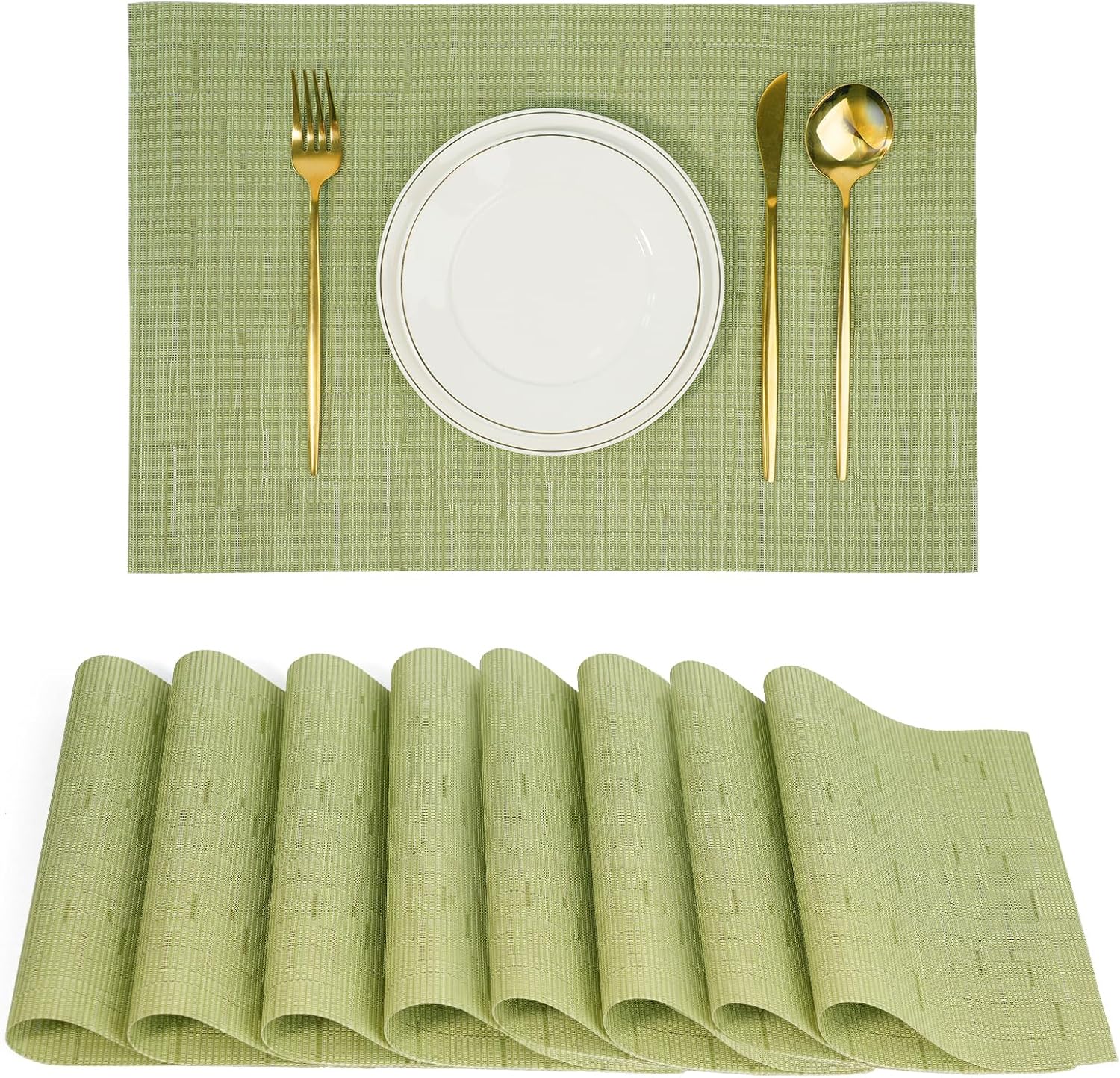 Placemats Set of 8,Non-Slip PVC Weave Table Mats Easy to Clean,Heat Resistant Place Mats for Kitchen Dining Table Decoration Indoor Outdoor,Pea Green