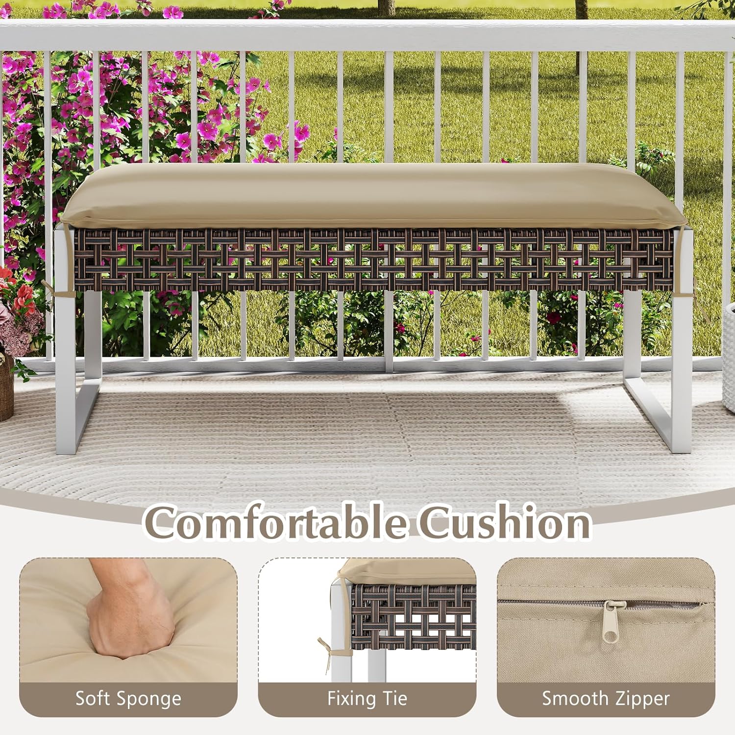 - Comfortable Cushion: The multipurpose outdoor furniture includes a cushion that is filled with high-elasticity sponge for an extra layer of comfort. Secured by fixing ties, the cushion features a smooth zipper on the cover for easy removal and cleaning.