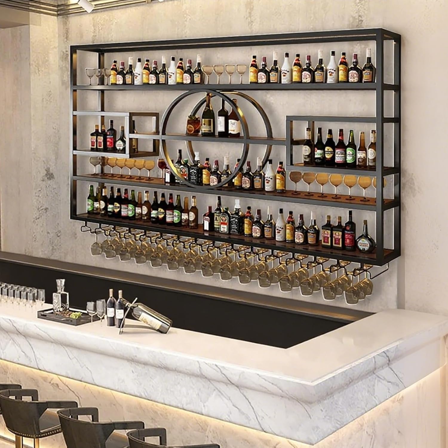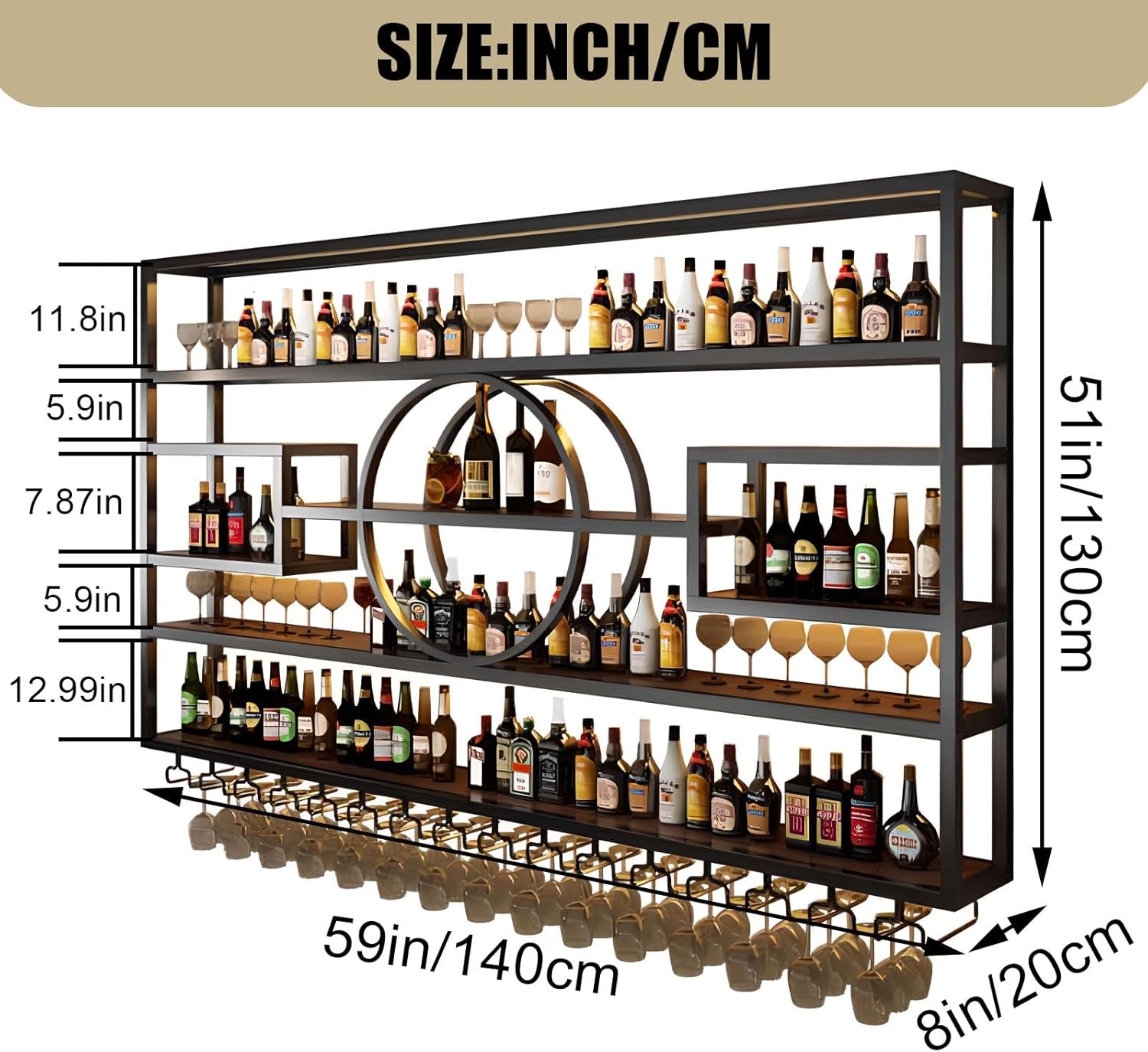 - 【Large Storage Space】The wall-mounted wine rack can be used as a bar decoration or a large wine storage cabinet. This height can store most wines or spirits when we sit at a small bar to relax all day or have a party. The wine glass rack is sturdy enough to hold more wine glasses. The wine rack doubles as a large storage rack, making the space look neat and organized
