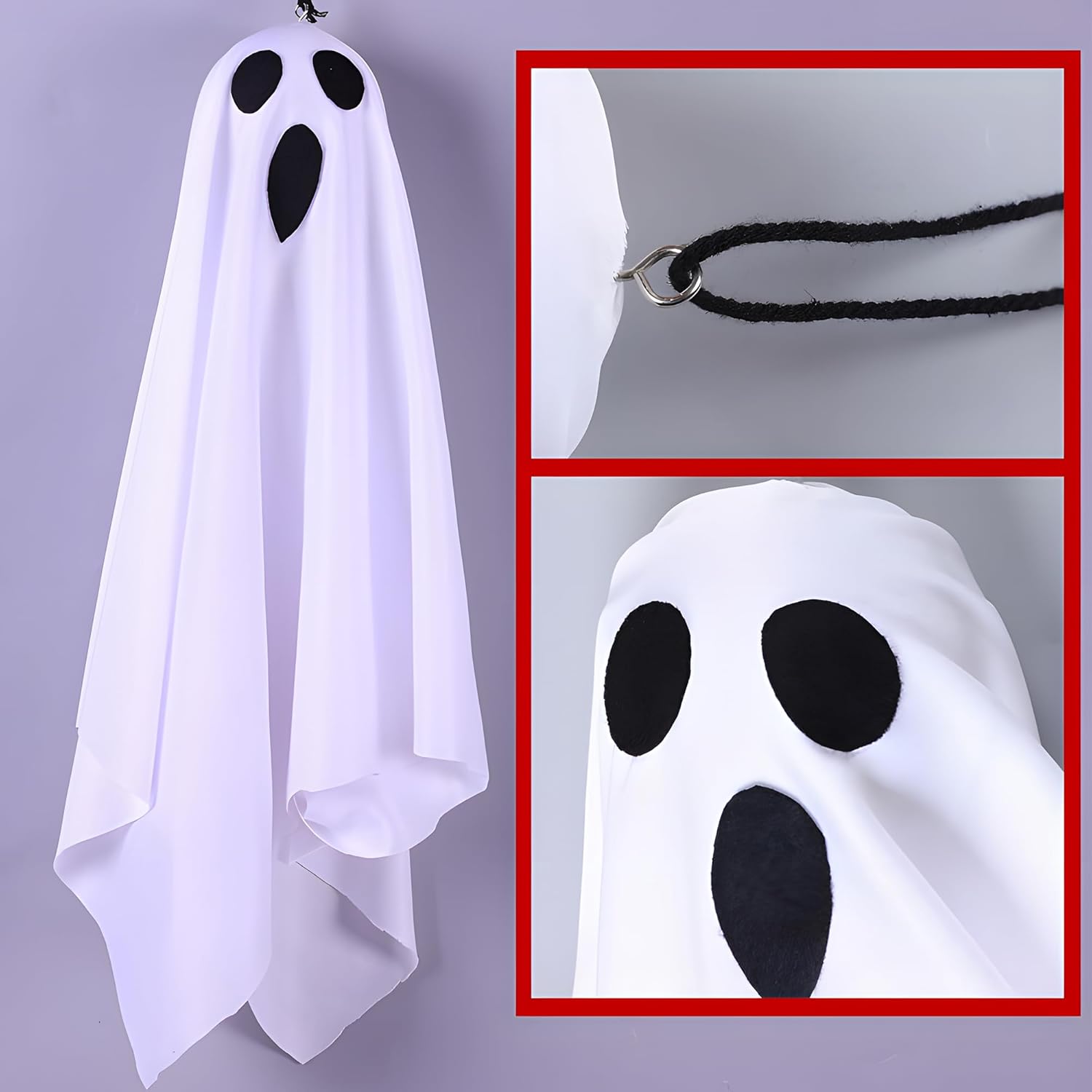 - 👻The 19.6-inch height adjustable ghost stands on indoor kitchens, offices, dining tables, fireplaces, and cabinets, or hangs on porches, surprising every visiting guest. The design can withstand outdoor conditions while maintaining its charming appearance throughout Halloween.