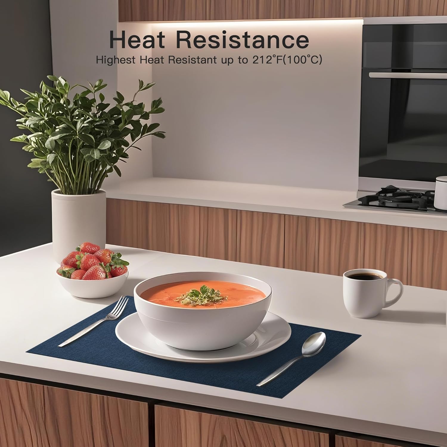 - 【Heat-Resistant & Multi-Functional】At 1.9mm thick and heat-resistant up to 212℉/100℃, these kichen tablemats protect your dinning table from hot dishes and spills. They also double as laptop pads, coffee maker mats, or workspace protectors—versatile for everyday living.