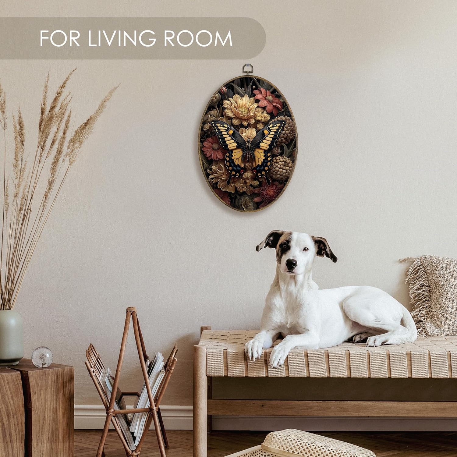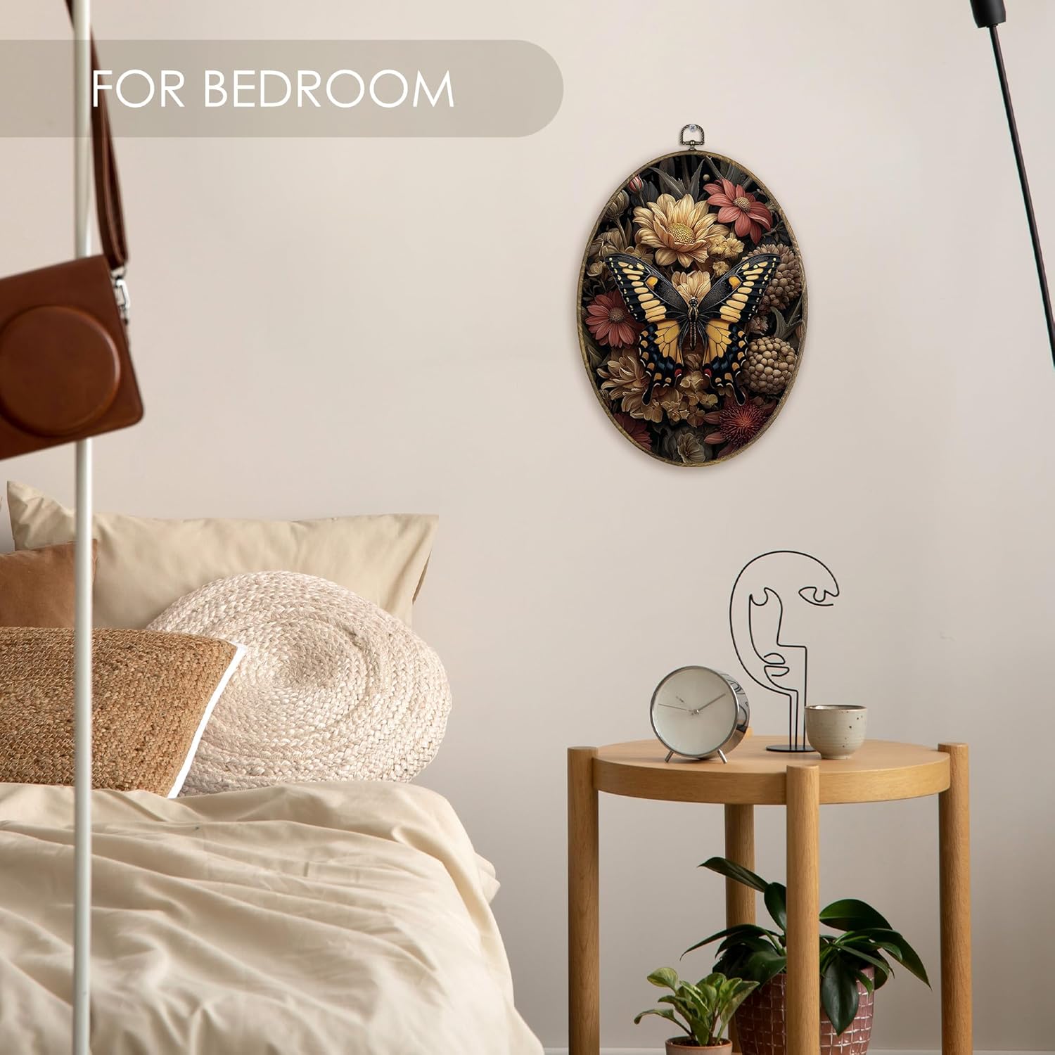 Fewgb Vintage Dark Moody Butterfly Floral Oval Wall Art Decor Framed, Farmhouse Dark Cottagecore Academia Canvas Wall Art Prints Picture, Botanical Hanging Room Decor Artwork for Kitchen Bathroom 9x12