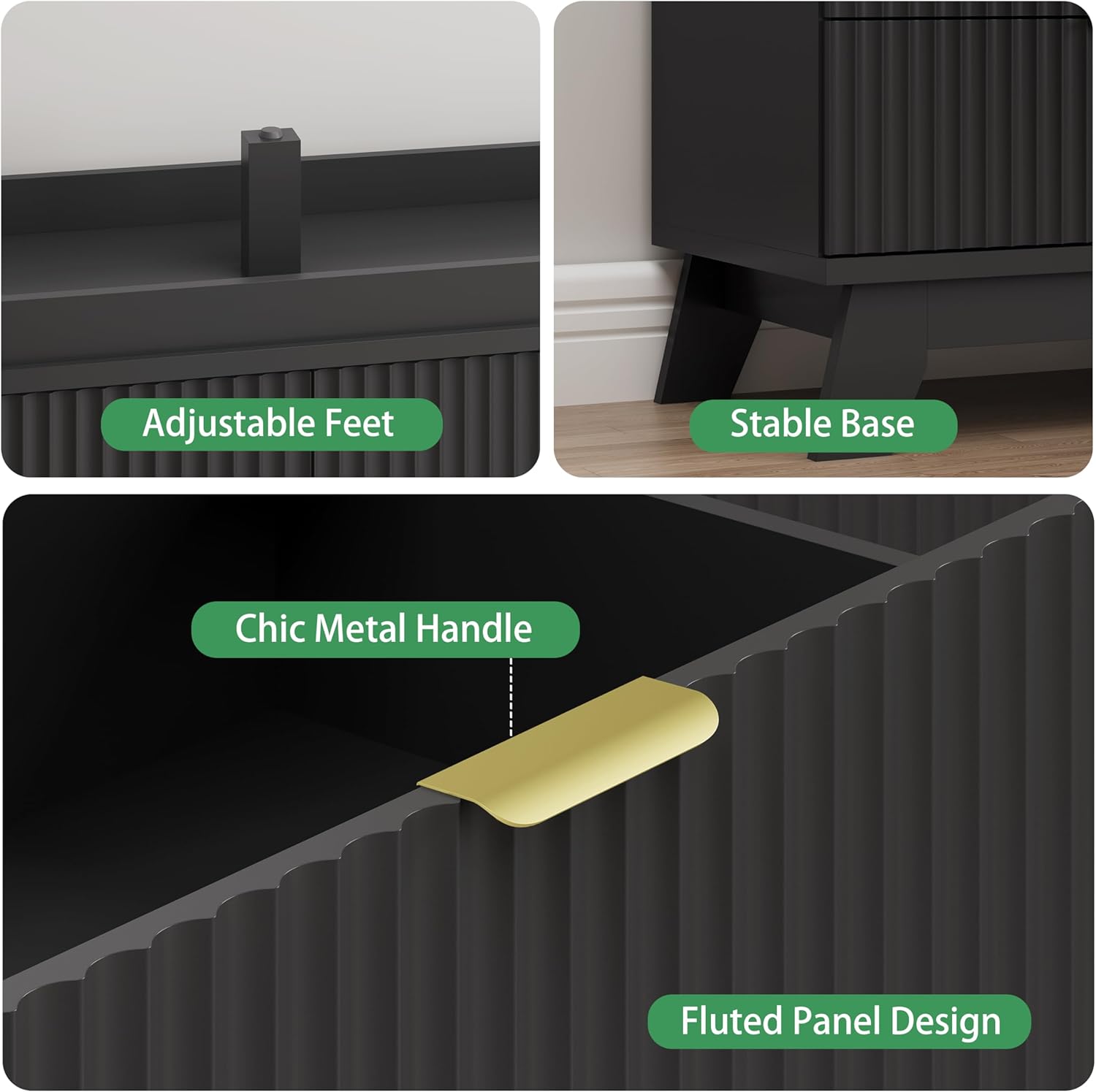 Fluted Dresser for Bedroom with 6 Drawers, 48" Wide Wooden Chest of Drawers with Metal Handle, Modern Dresser TV Stand, Wood Closet Clothes Storage Organizer for Living Room, Hallway, Black