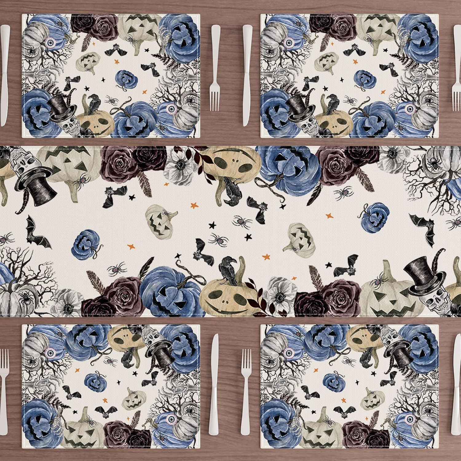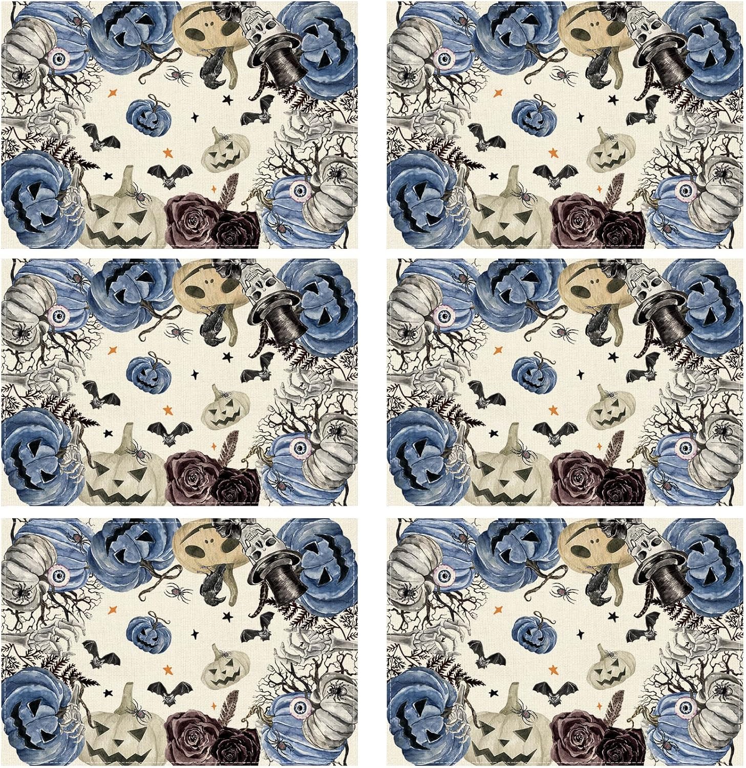 XCHI Spooky Blue Pumpkin Halloween Placemats Set of 6 Table Mats for Party Home Kitchen Dining Table Decorations 12x18 Inch