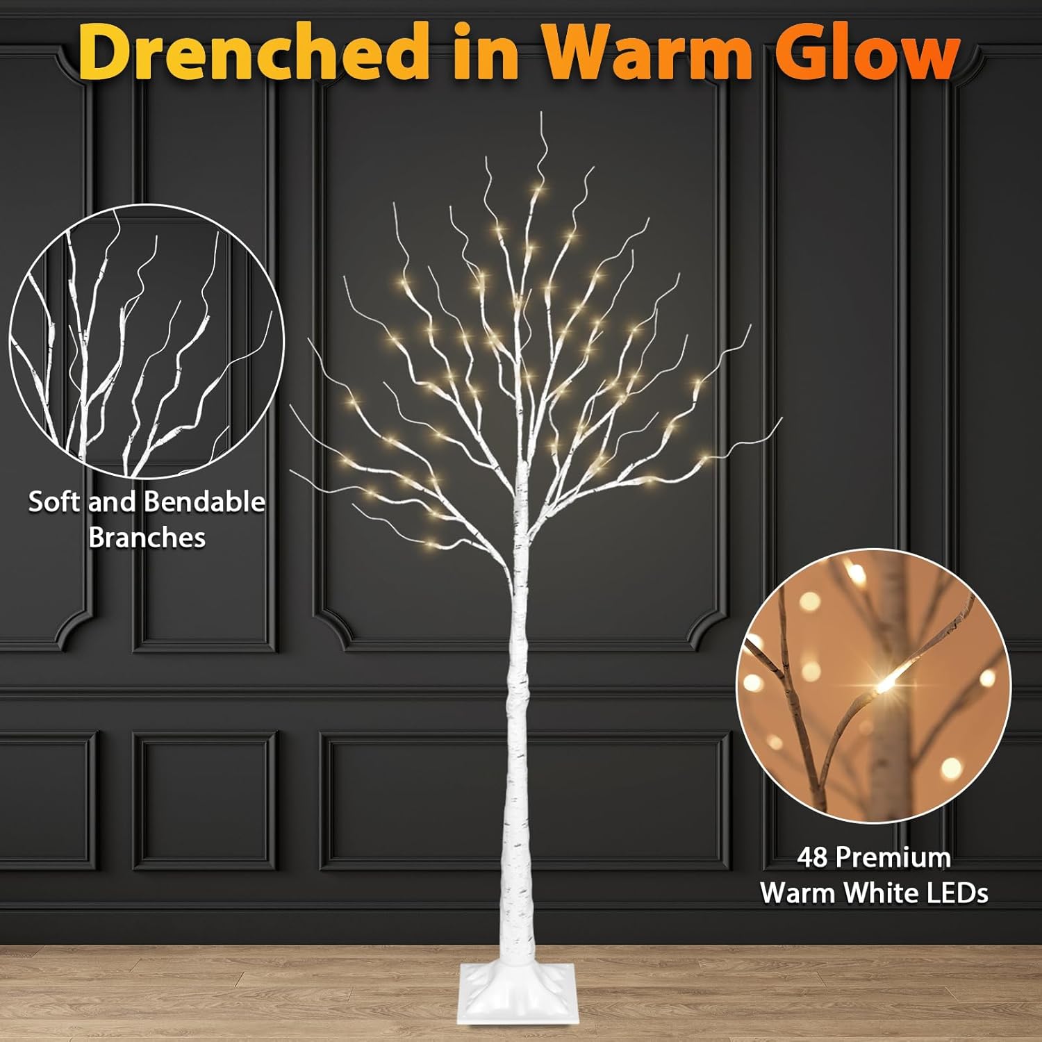 LED Birch Tree Lights, 4ft Trees with Warm White Lights, Outdoor Indoor Christmas Wedding Party Decor
