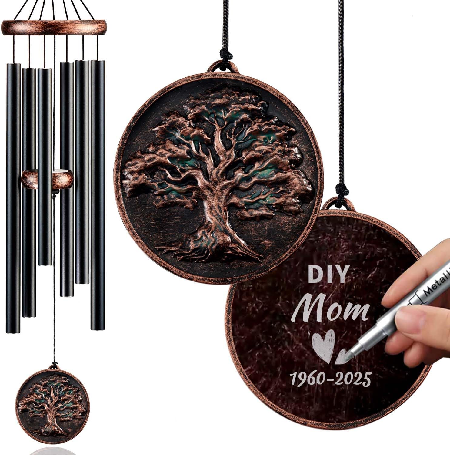 Memorial Wind Chimes for Loss of Loved One, Tree of Life Vintage Wind Chime for Outside, Sympathy/Memorial/Retirement/Festivals/Birthday Gift for Father/Mother/Lover (DIY 34" Tree of Life)